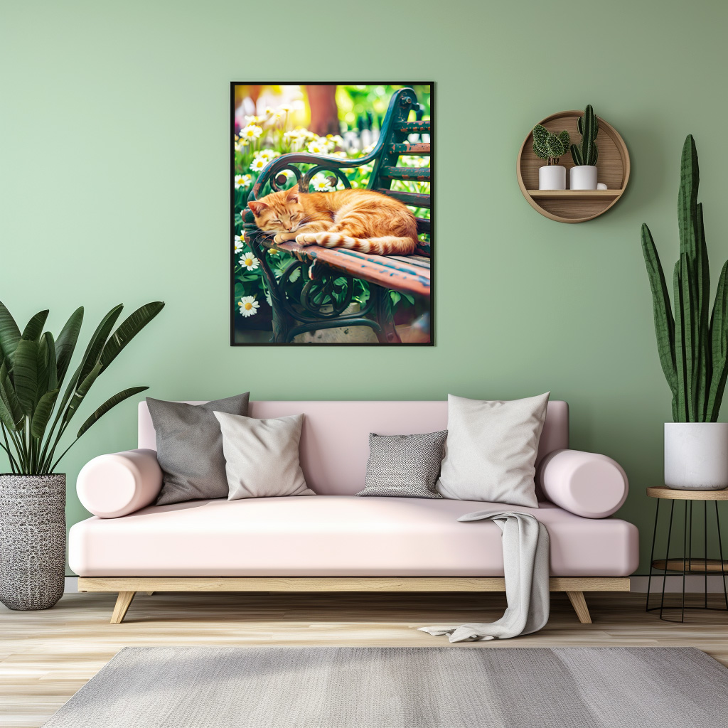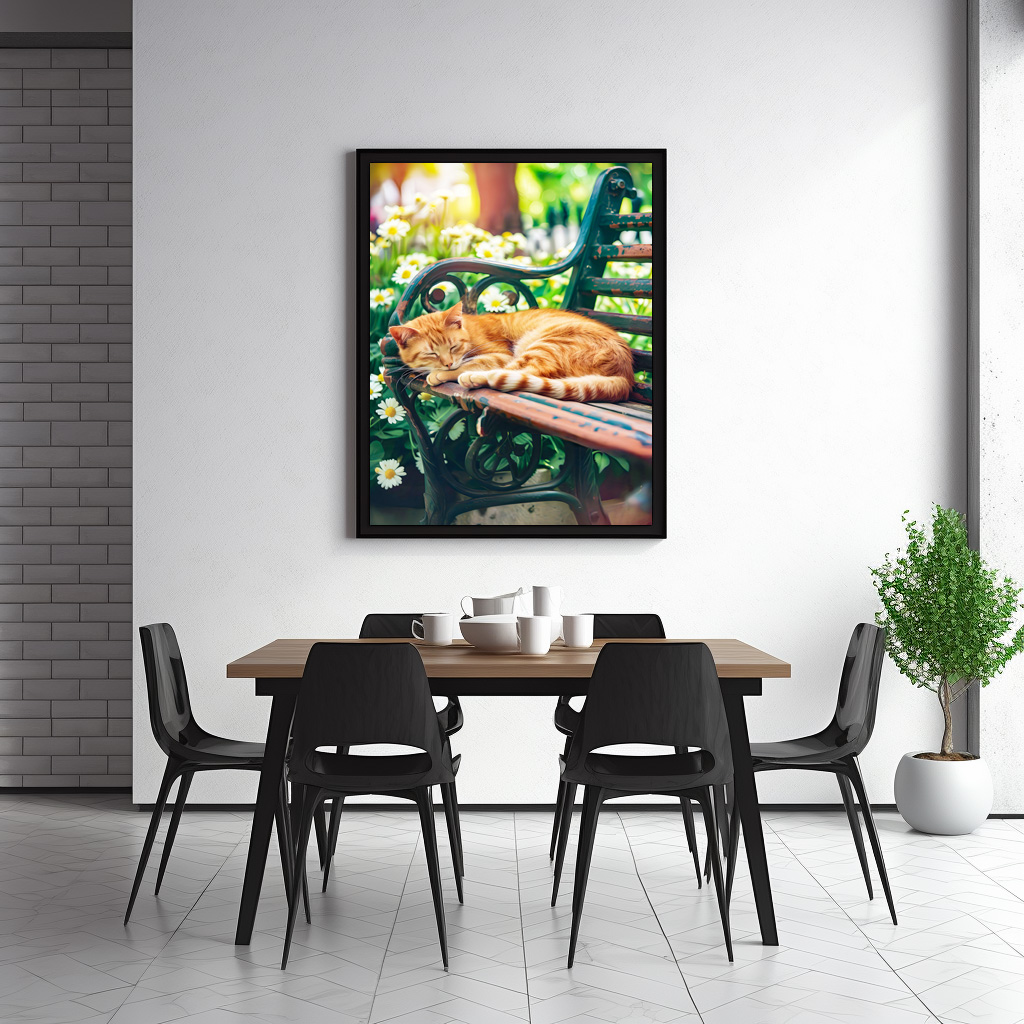 "Cozy Cat Napping in Comfortable Setting on a garden bench" by Anja Frost
