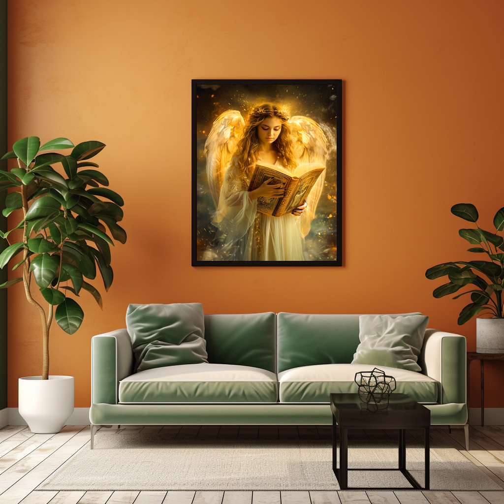 angel gracefully holding a Bible, symbolizing divine guidance and wisdom. Immerse yourself in the celestial aura of this heavenly figure, embodying the essence of spiritual enlightenment.