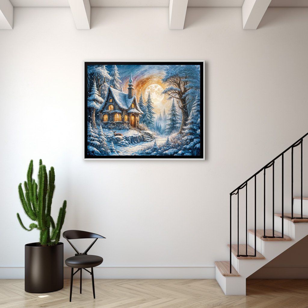 "Enchanting Winter Cottage in Moonlight" by Anja Frost