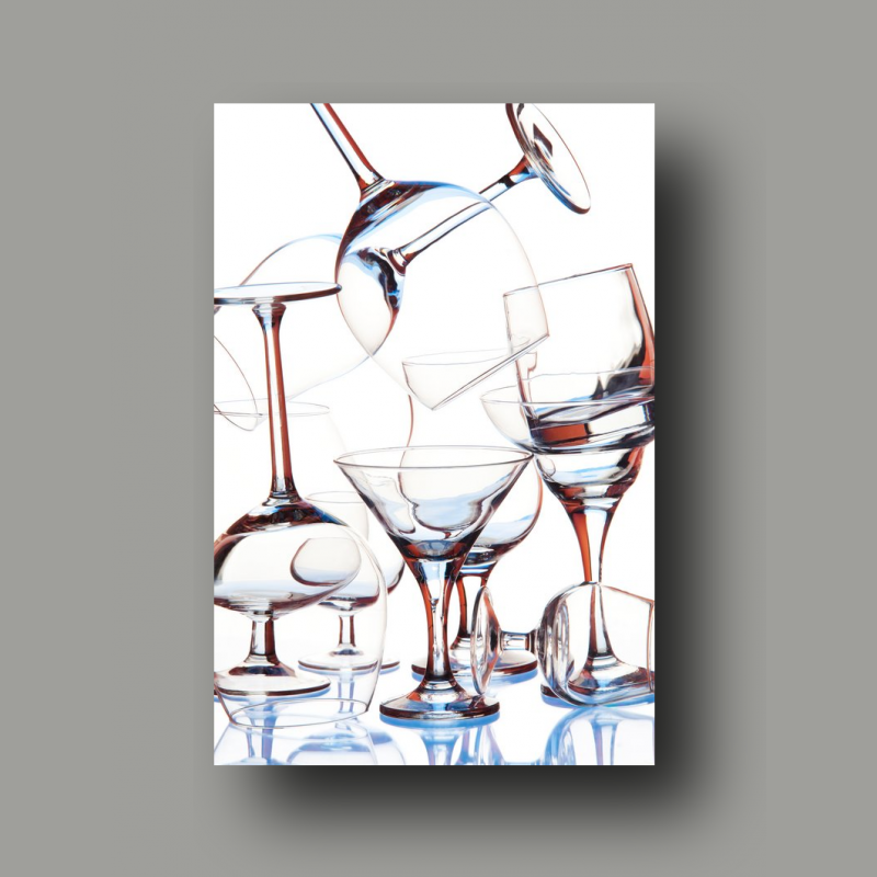 Glass composition - Many transparent glasses and wine glasses with defined shape with color