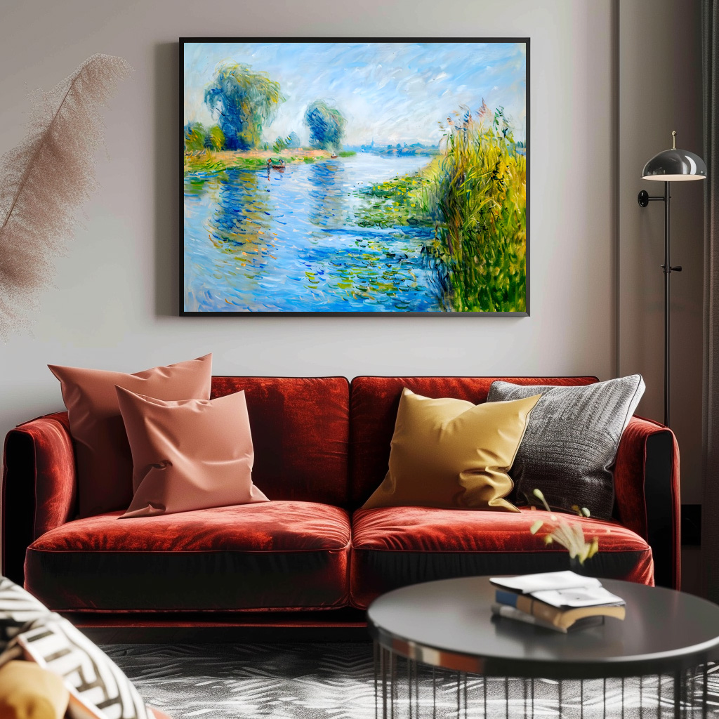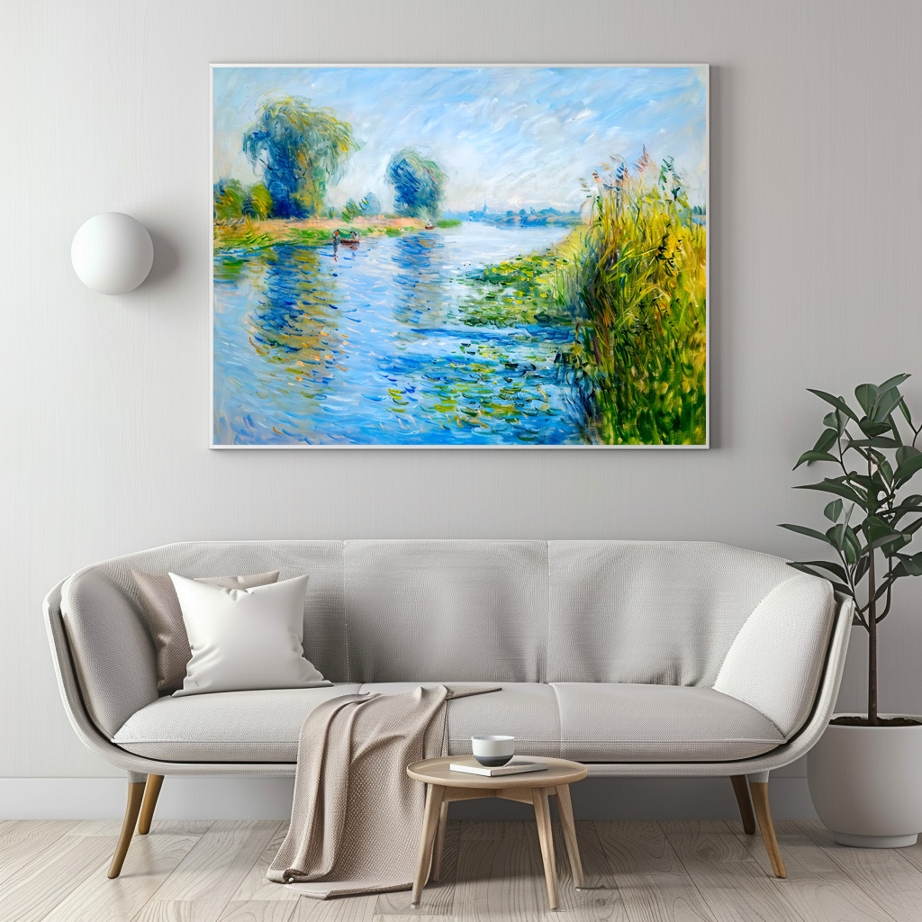 "Impressionist Spring Riverbank with boats" by Anja Frost