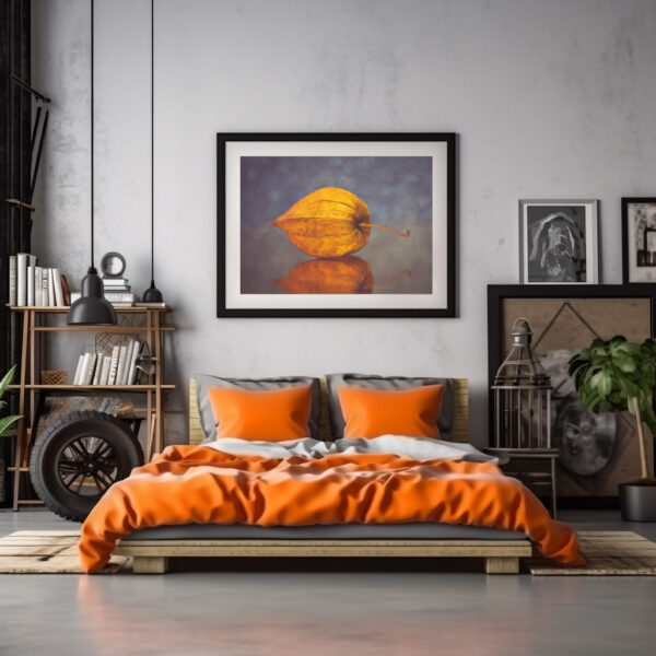 Small yellow lampion fruit, lying on dark background with bokeh.