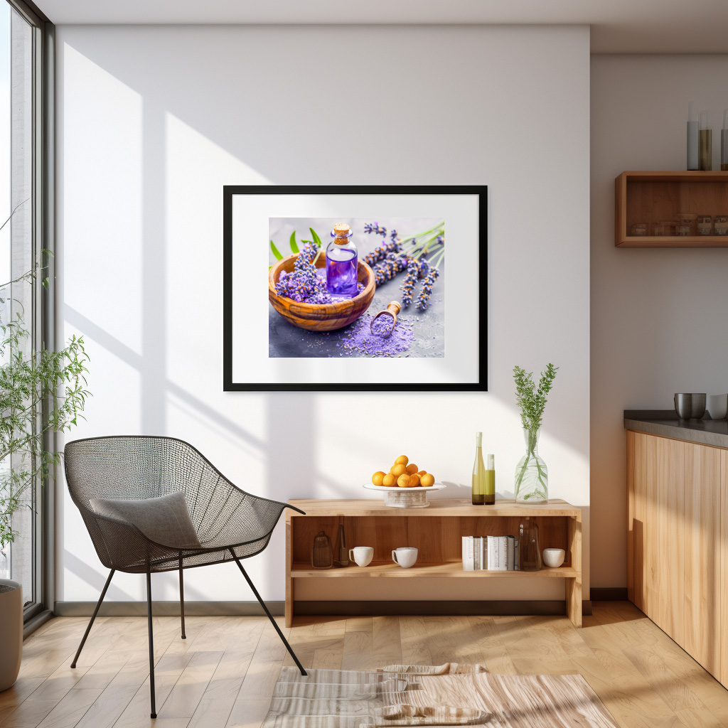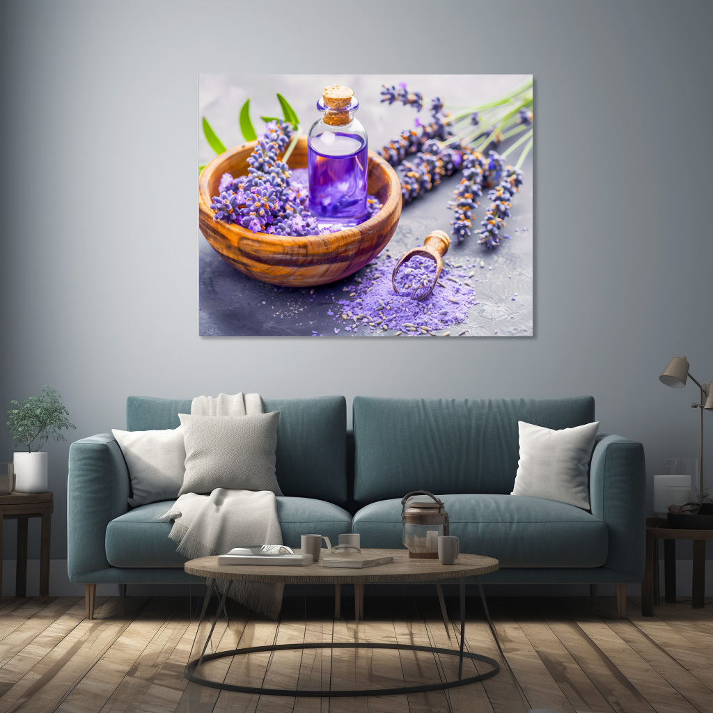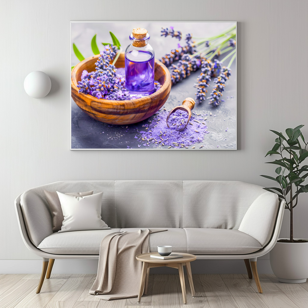 "Lavendelöl und Duft in Holzschale" by Anja Frost