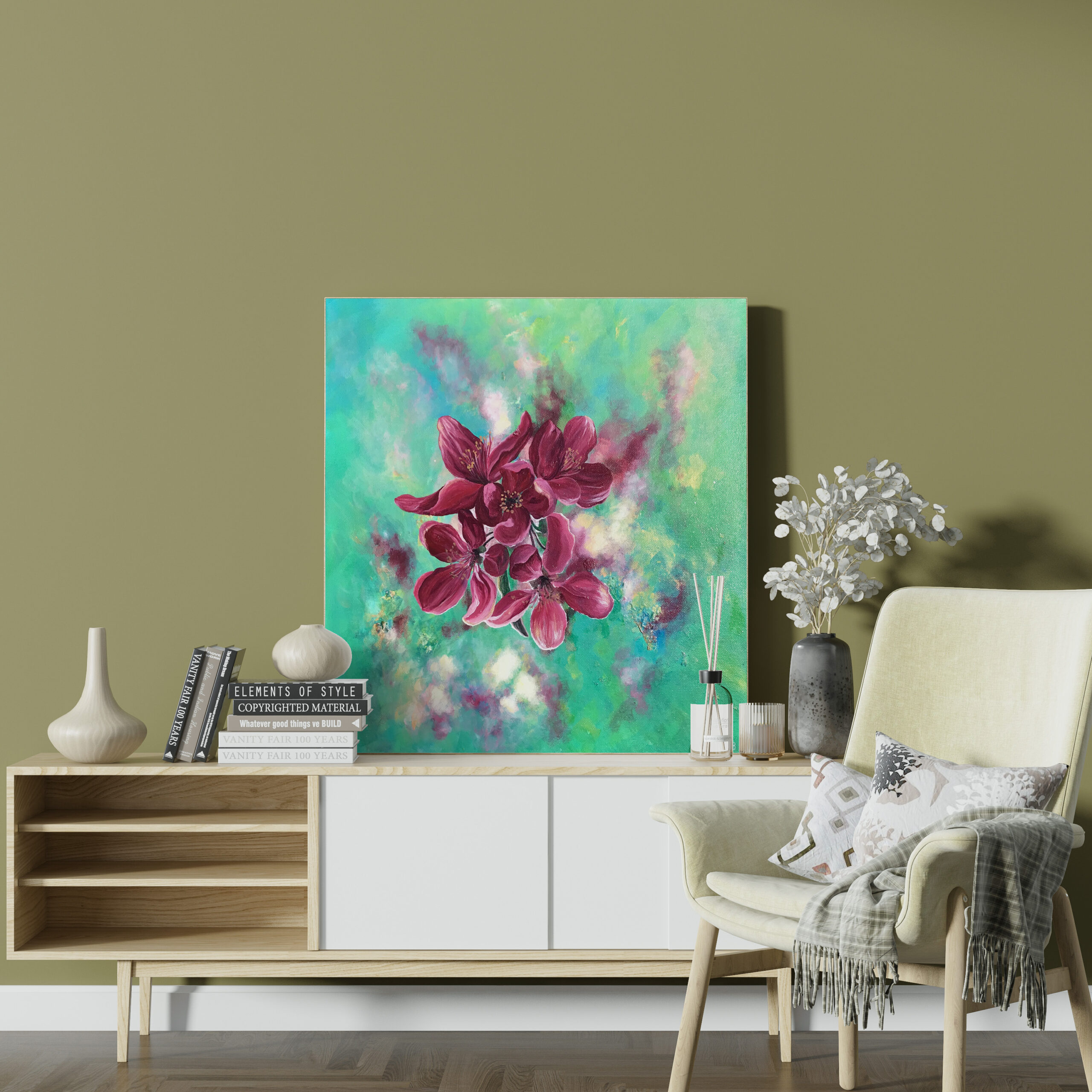 Diese Blüten sind ein Frühlingsgruß. Ein Farbintensives Zeichen für neues Leben, neue Lebenskraft, neuen Mut, für neues Aufblühen! In naturgetreuer Perfektion sind die zarten Blüten von einem kontrastreichen, weichen Hintergrund gemalt.