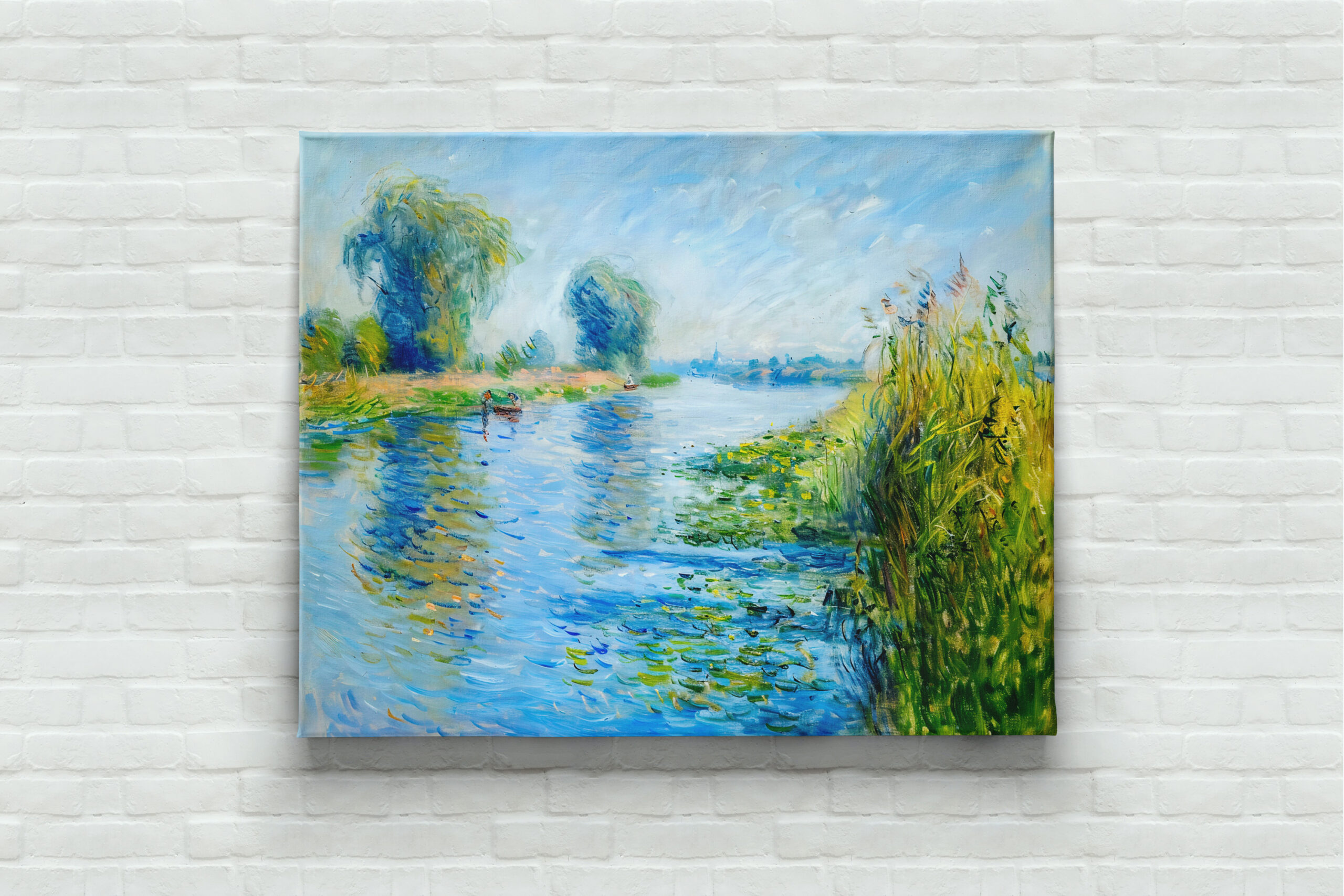 "Impressionist Spring Riverbank with boats" by Anja Frost