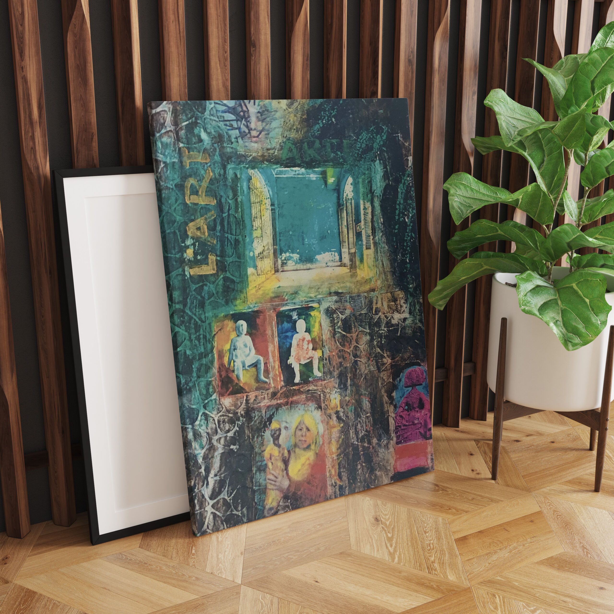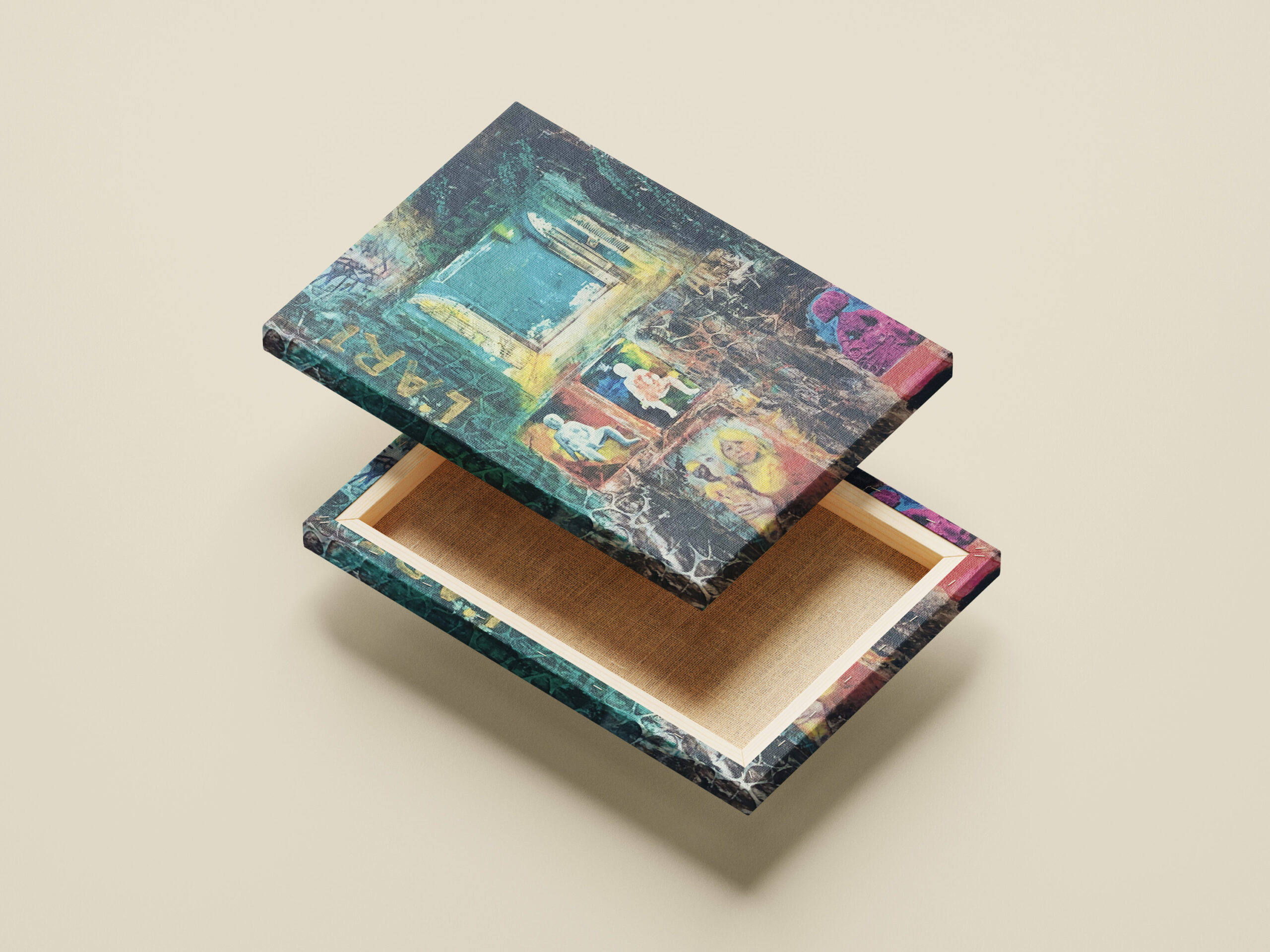 Collage auf Stragula verarbeitetmit Bitumen