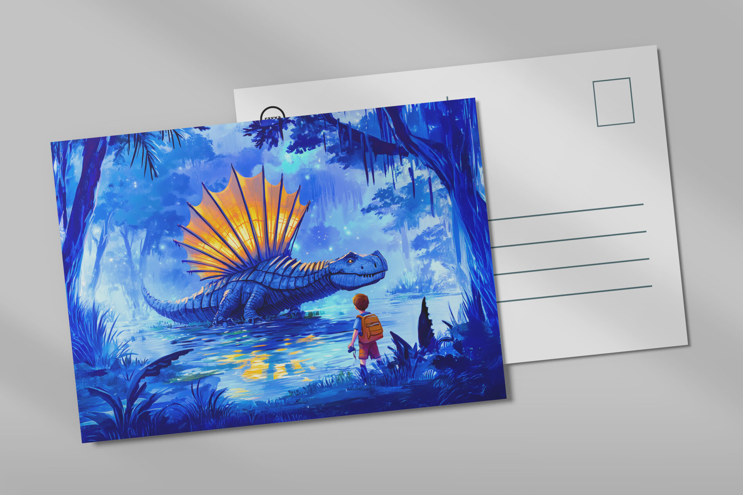 "Anime boy photographing swamp dinosaur" by Anja Frost