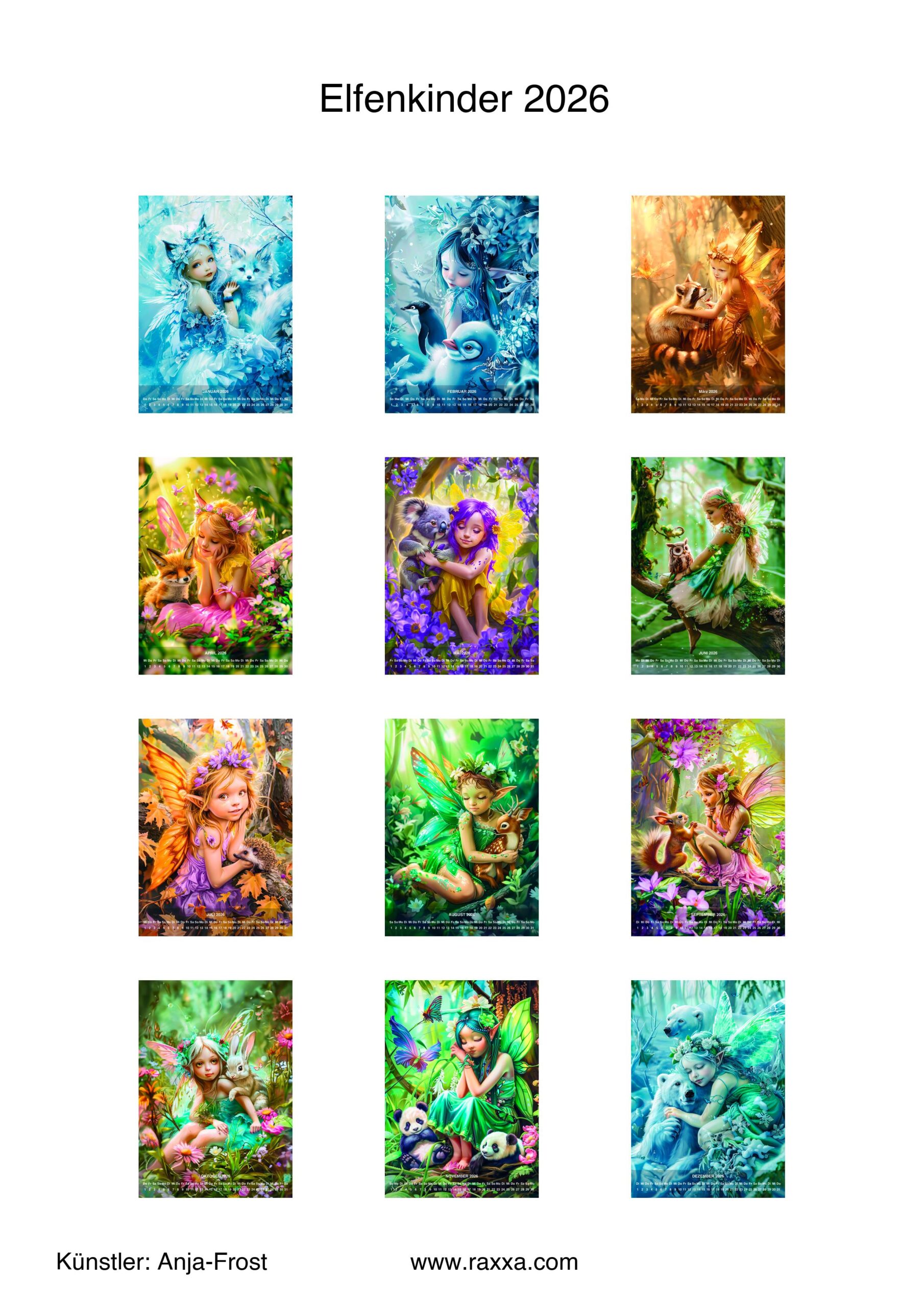 raxxa Premium-Monatskalender Elfenkinder 2026 by Anja Frost