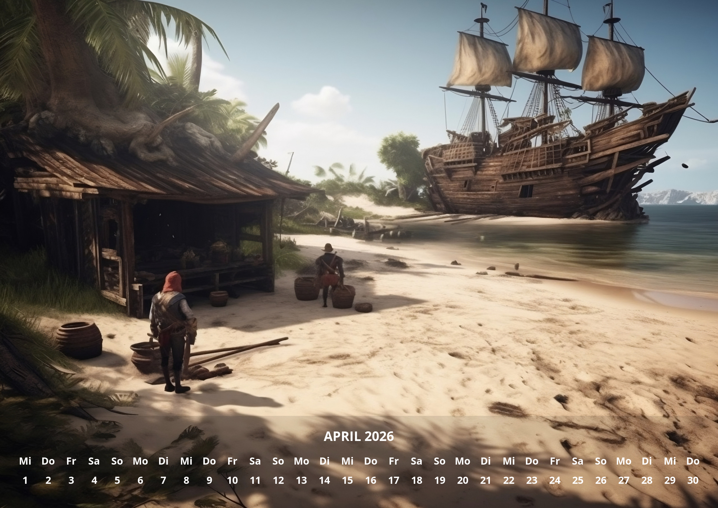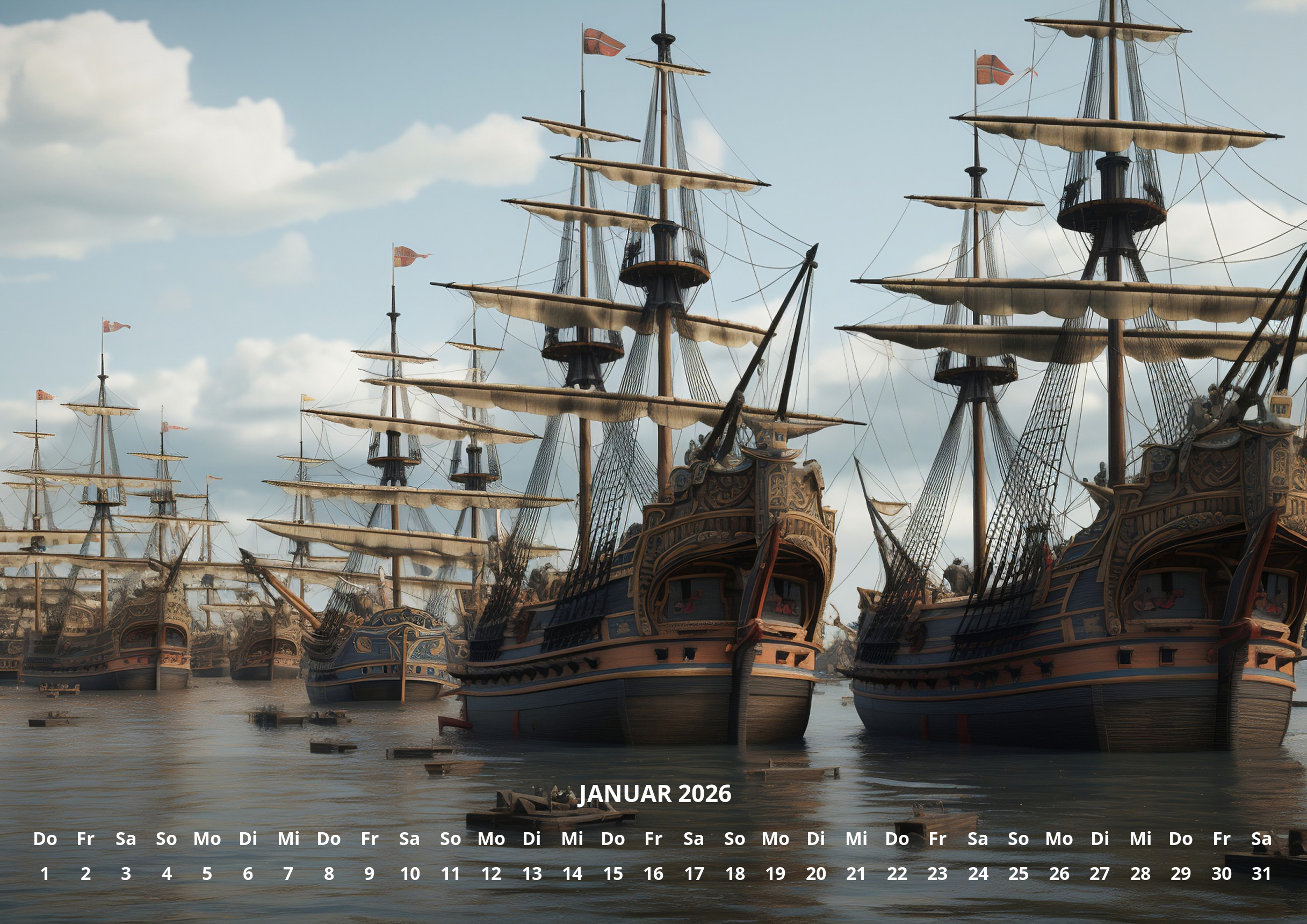 raxxa Premium-Monatskalender Piraten Schiffe 2026 by Mr. Yoda