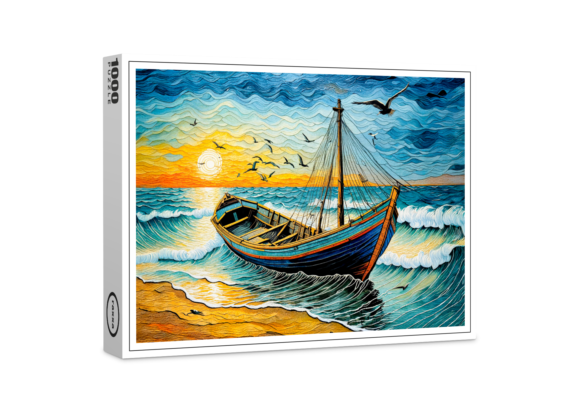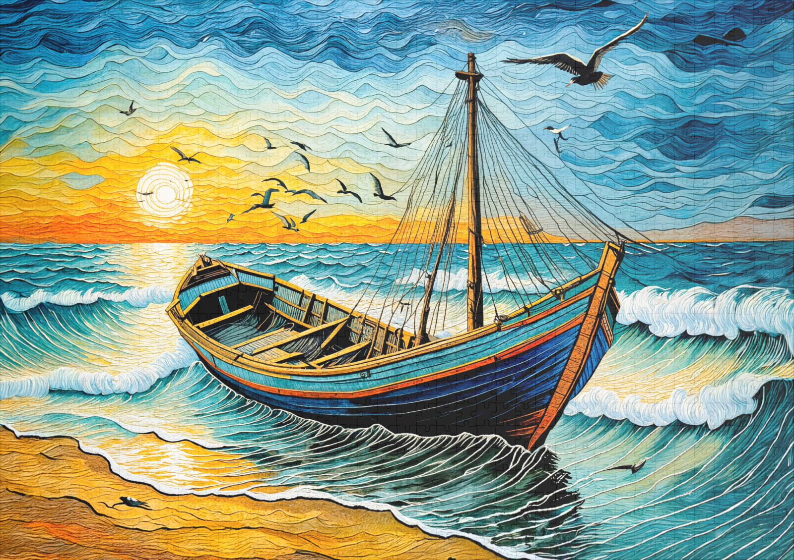 „Boat on Calm Waters at Sunset“ by Anja Frost