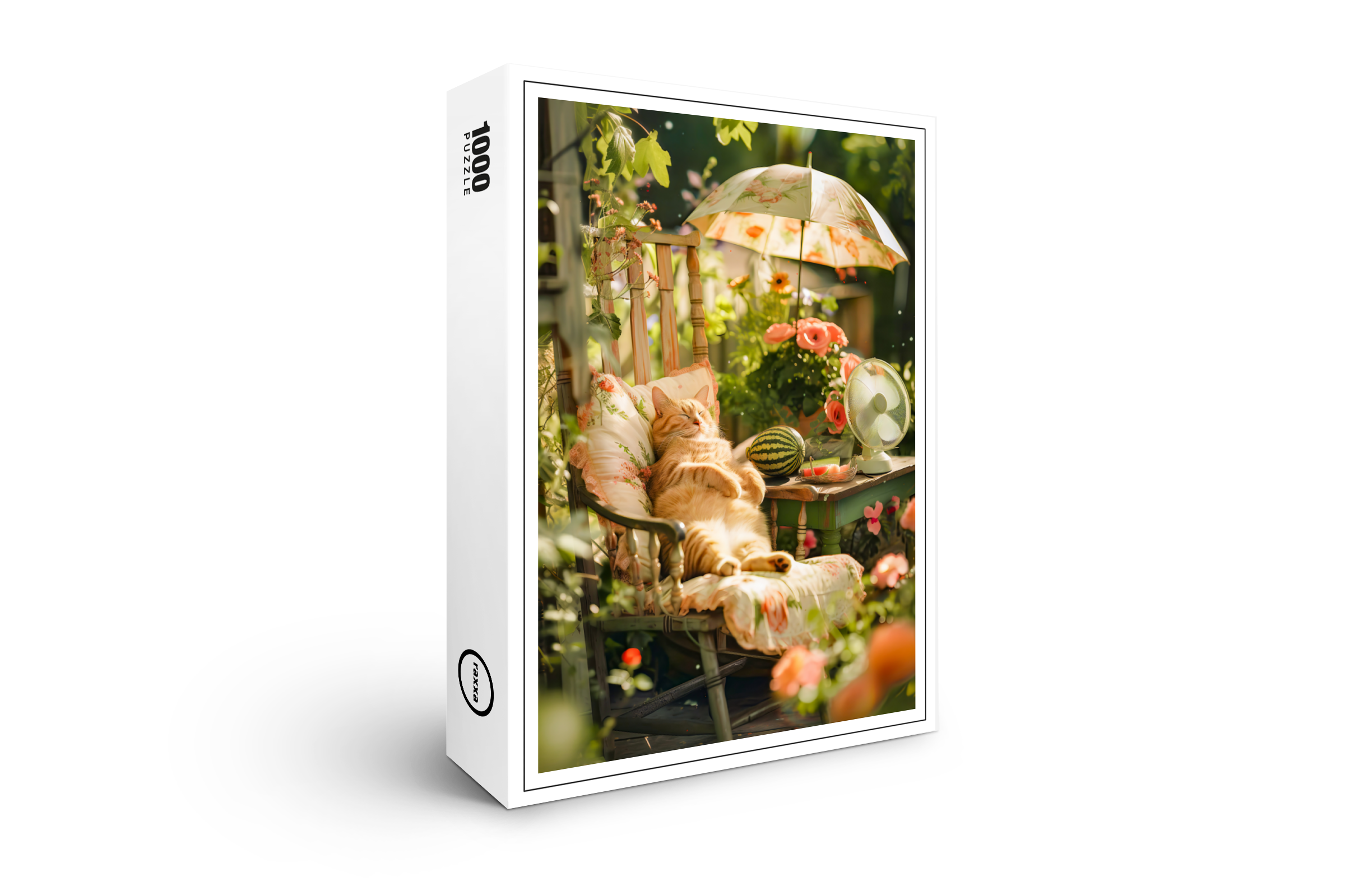„Cat Relaxing in Deck Chair Under Sun Umbrella“ by Anja Frost
