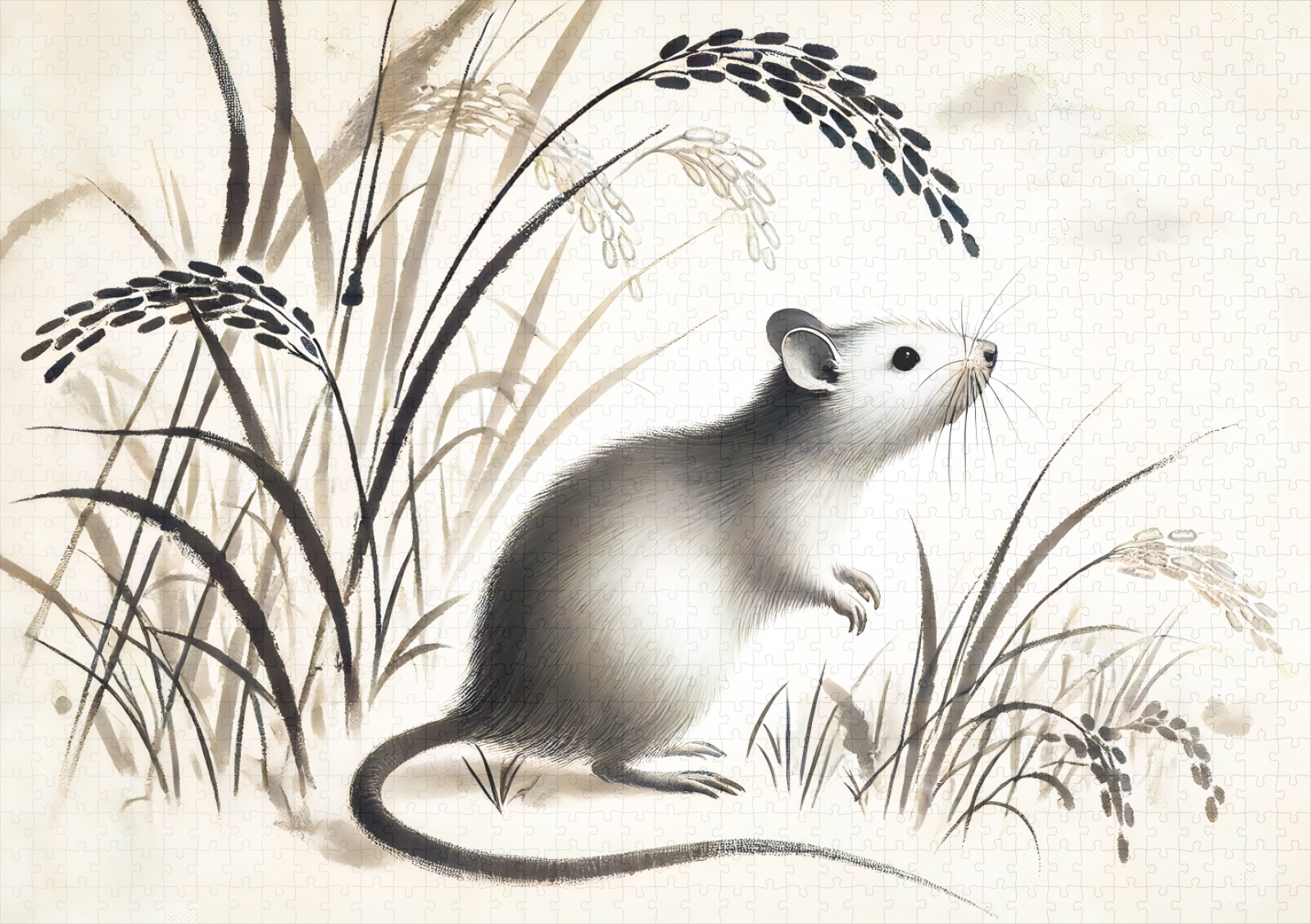 „Cunning Rat Under Rice Plant. ink zodiac“ by Anja Frost