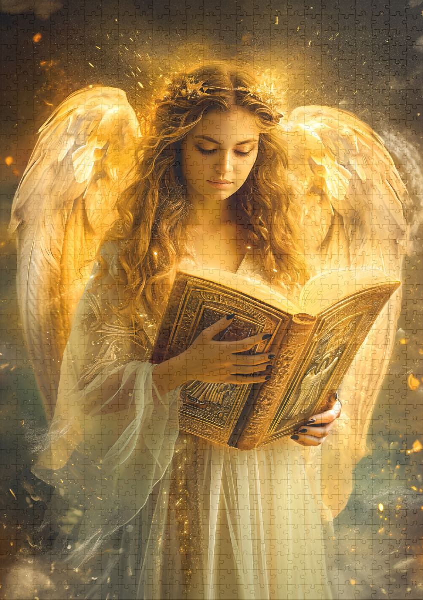 angel gracefully holding a Bible, symbolizing divine guidance and wisdom. Immerse yourself in the celestial aura of this heavenly figure, embodying the essence of spiritual enlightenment.