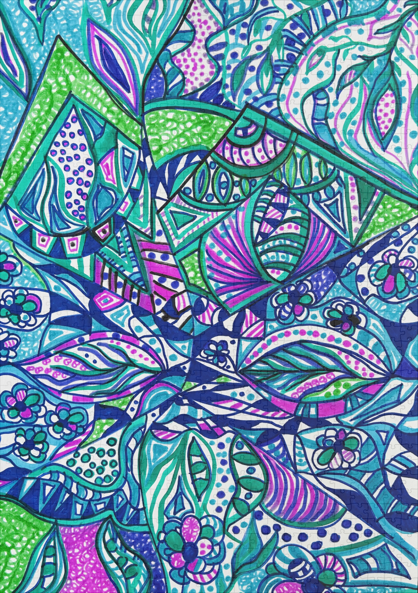 Los colores se fusionan y unen, creando figuras y formas primaverales. Un homenaje a la estación primaveral, alegre, tranquila y llena de paz.