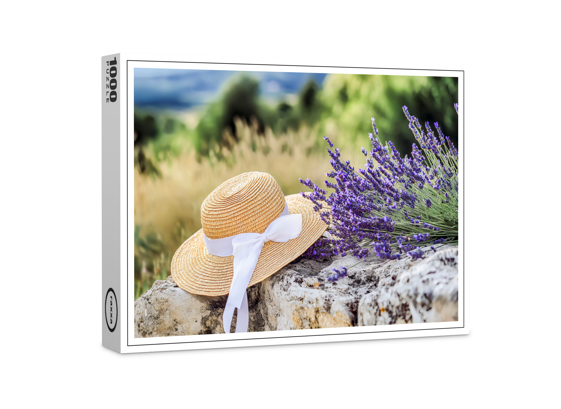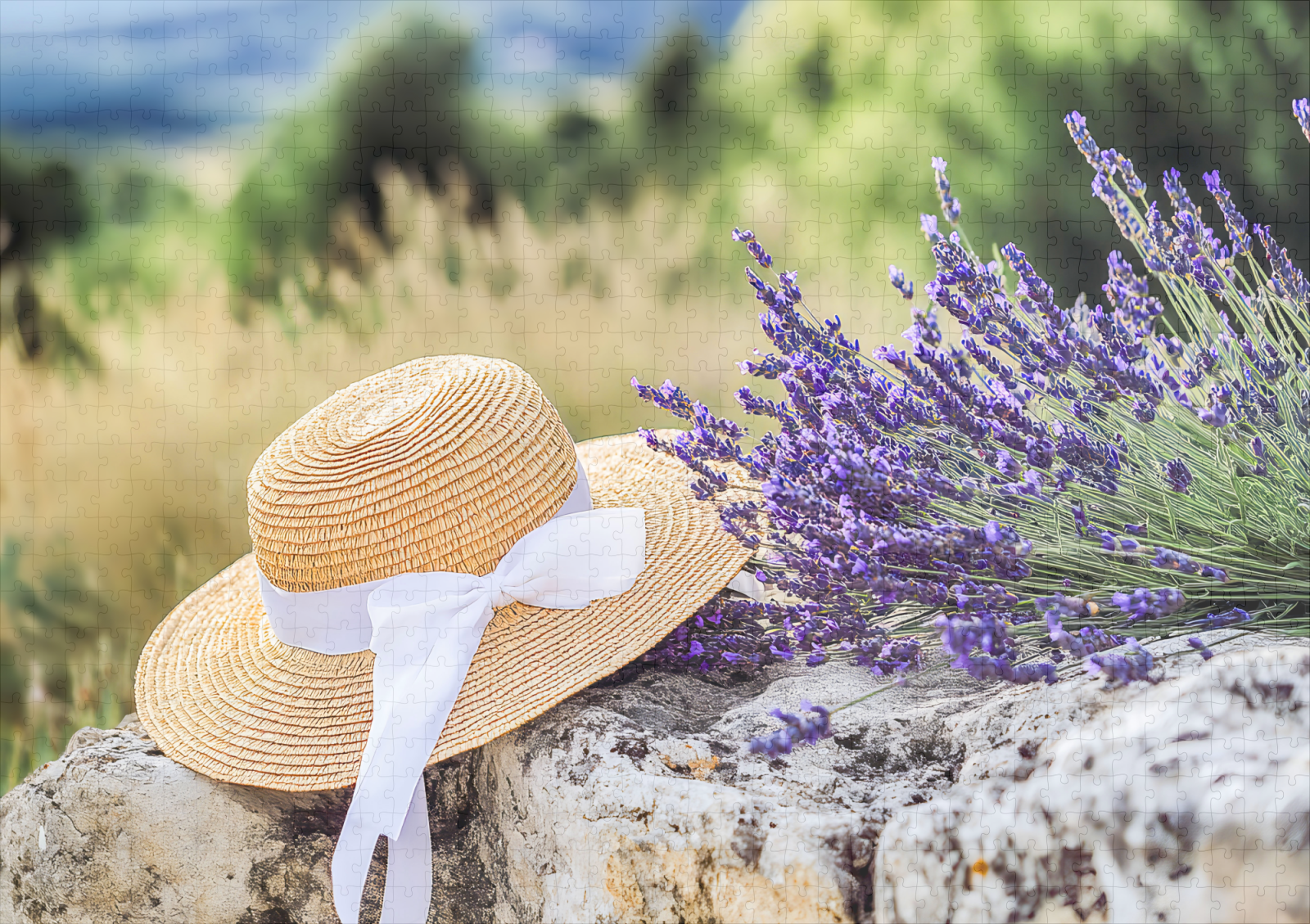 raxxa Premium-Puzzle: Frühlingslicht auf Lavendelstrauß mit Hut