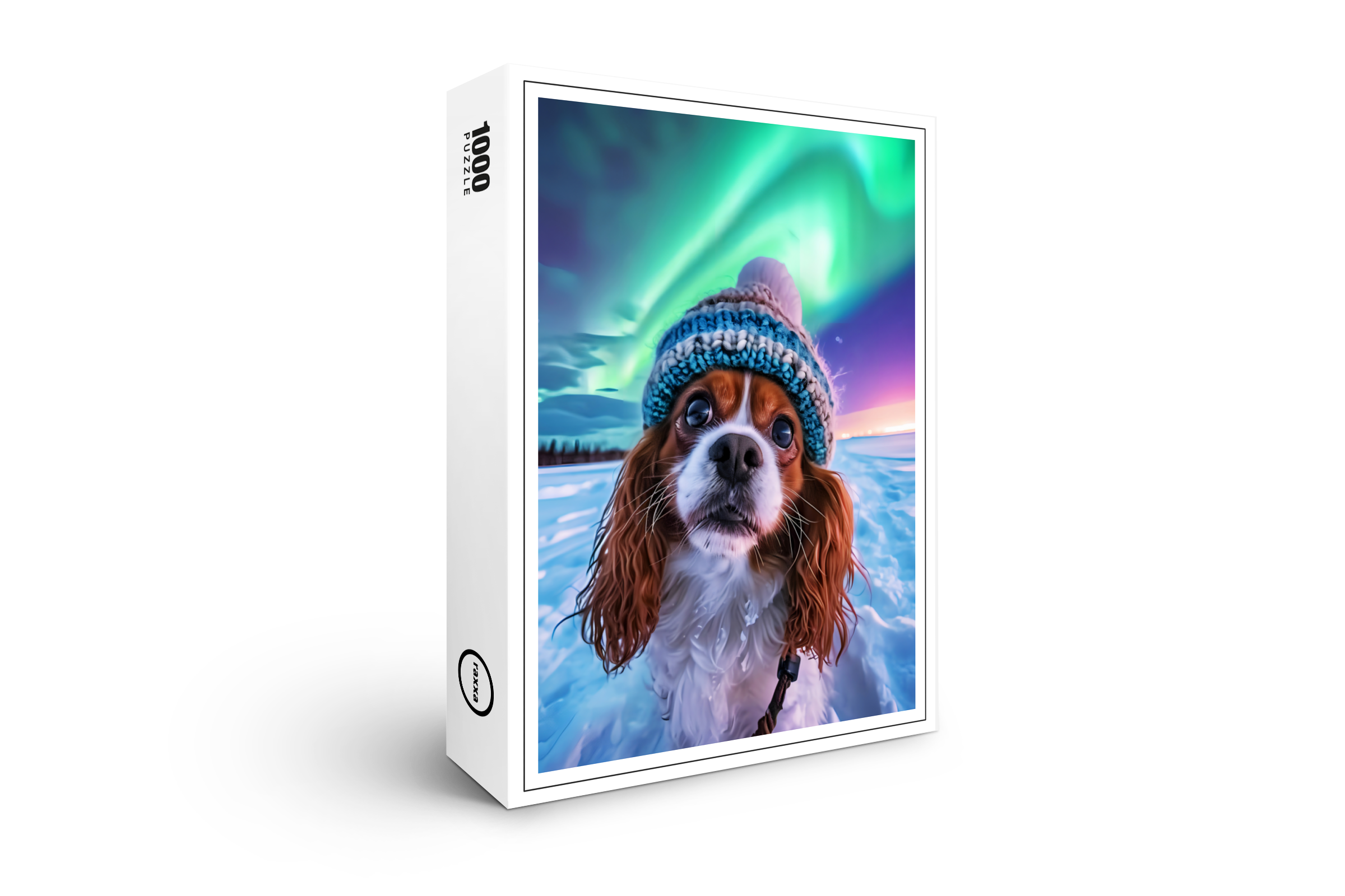 King Charles Cocker Spaniel travels the world, capturing selfies in various destinations in Norway with northern lights