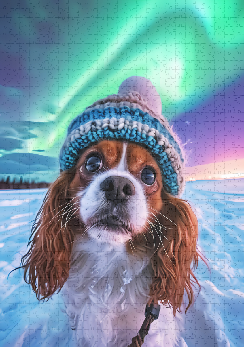 „King Charles Cocker Spaniel Takes Selfies with northern lights“ by Anja Frost