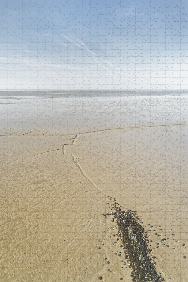 North Sea - View over a deserted mudflat area at low tide. A tidal flat serves as a view guide into the seemingly endless tidal flat landscape - Location: Germany, North Sea coast, Cuxhaven