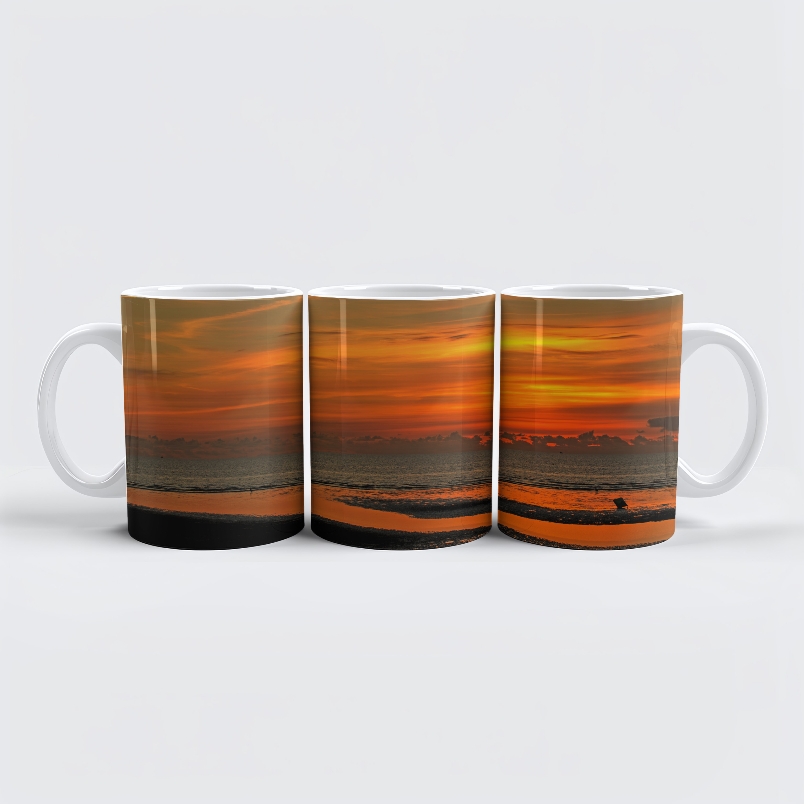 Sunset on the North Sea beach in St. Peter Ording. The sky seems to be on fire.