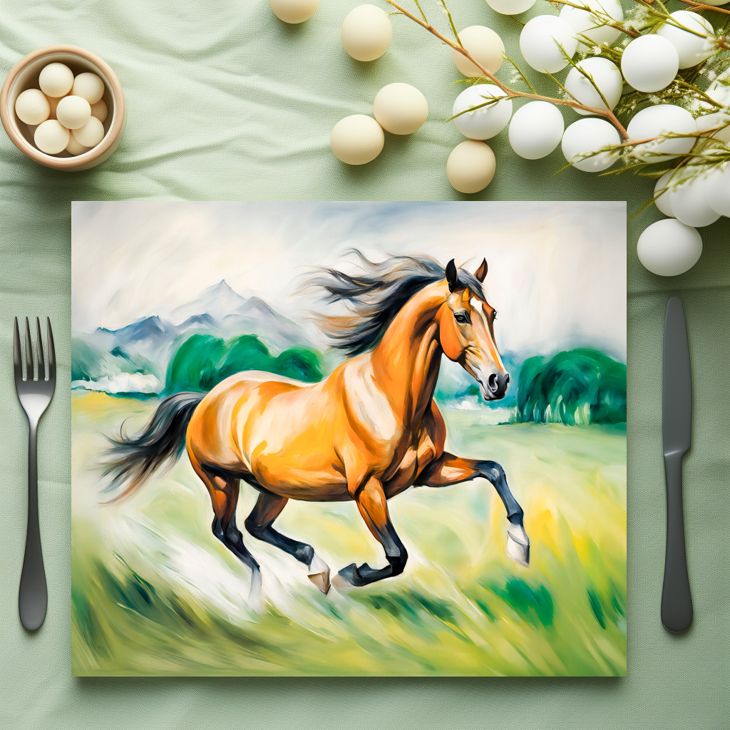 raxxa Premium-Tischset: Brown Horse Running Across a Meadow