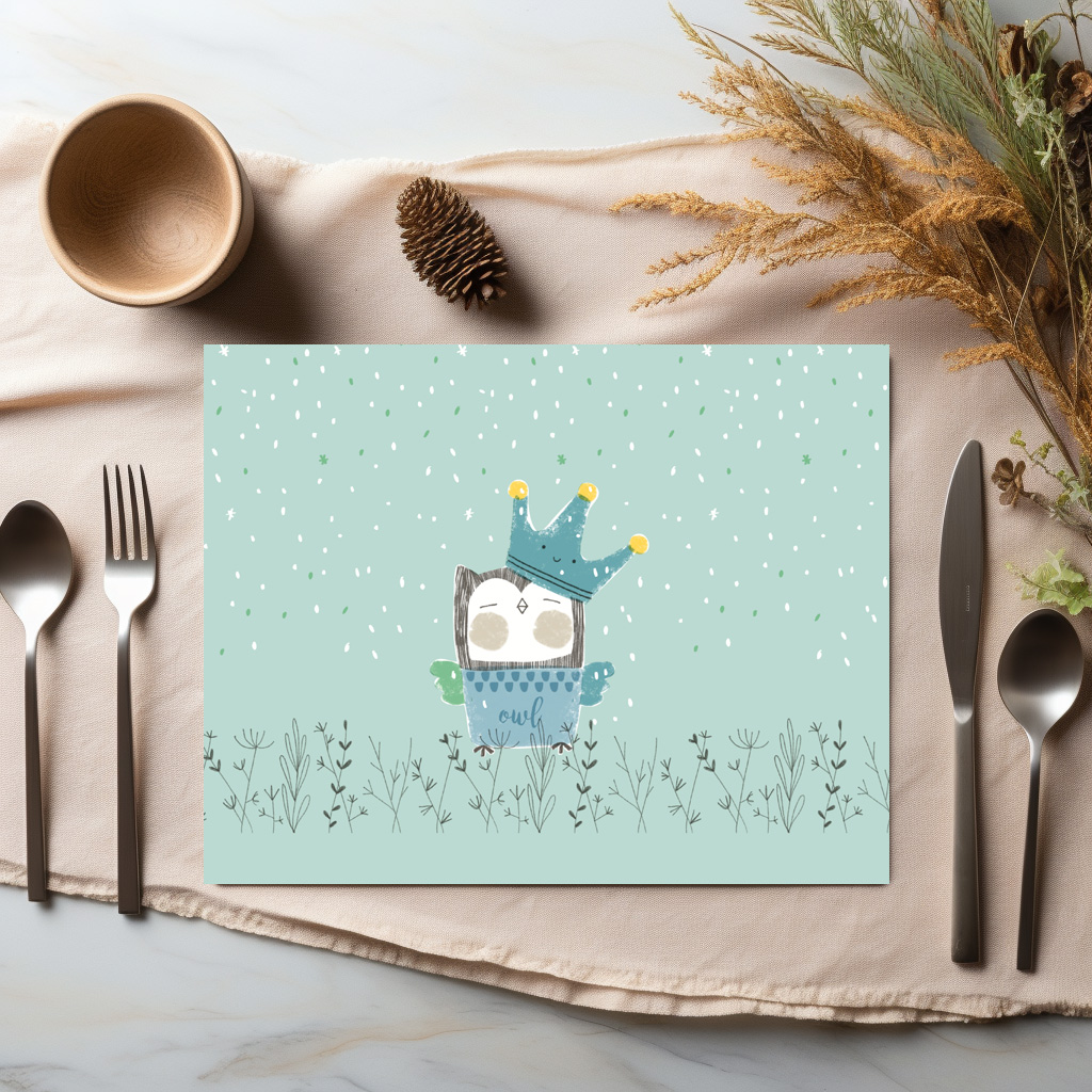 Brighten up your dining room with our colorful vinyl placemats from our artists! These one-sided printed placemats are made from durable material and are perfect for adding a pop of color to your table. Measuring 40 x 30 cm, they are just the right size for any tableware. Brighten up your meals with style and practicality!