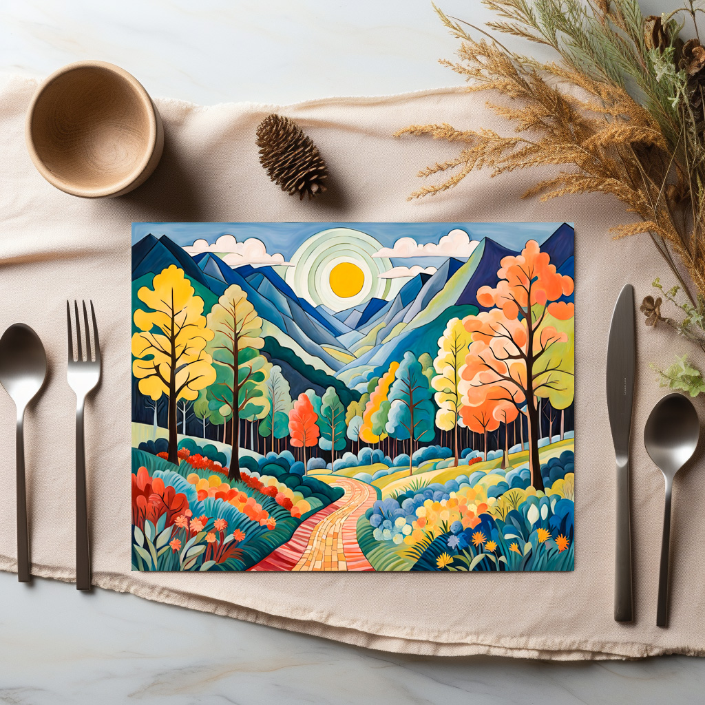 Brighten up your dining room with our colorful vinyl placemats from our artists! These one-sided printed placemats are made from durable material and are perfect for adding a pop of color to your table. Measuring 40 x 30 cm, they are just the right size for any tableware. Brighten up your meals with style and practicality!