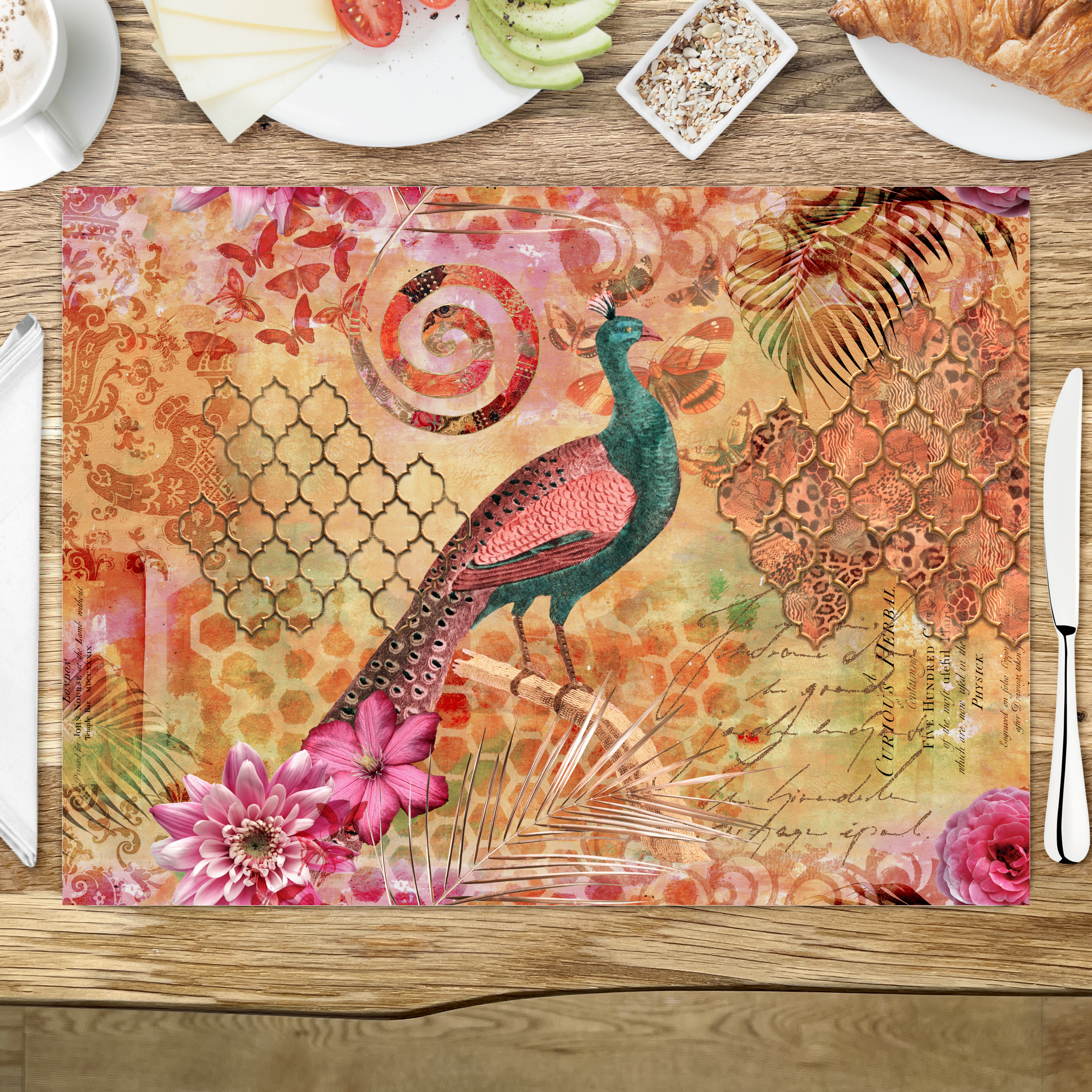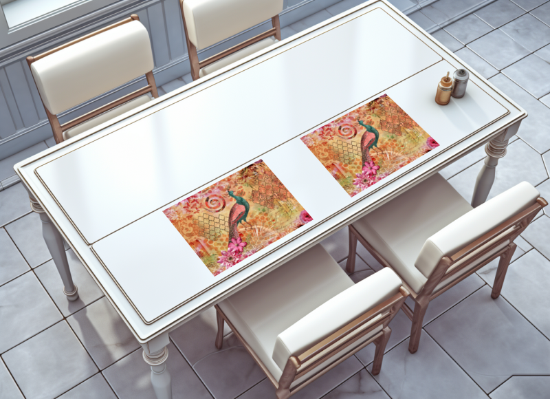 Brighten up your dining room with our colorful vinyl placemats from our artists! These one-sided printed placemats are made from durable material and are perfect for adding a pop of color to your table. Measuring 40 x 30 cm, they are just the right size for any tableware. Brighten up your meals with style and practicality!