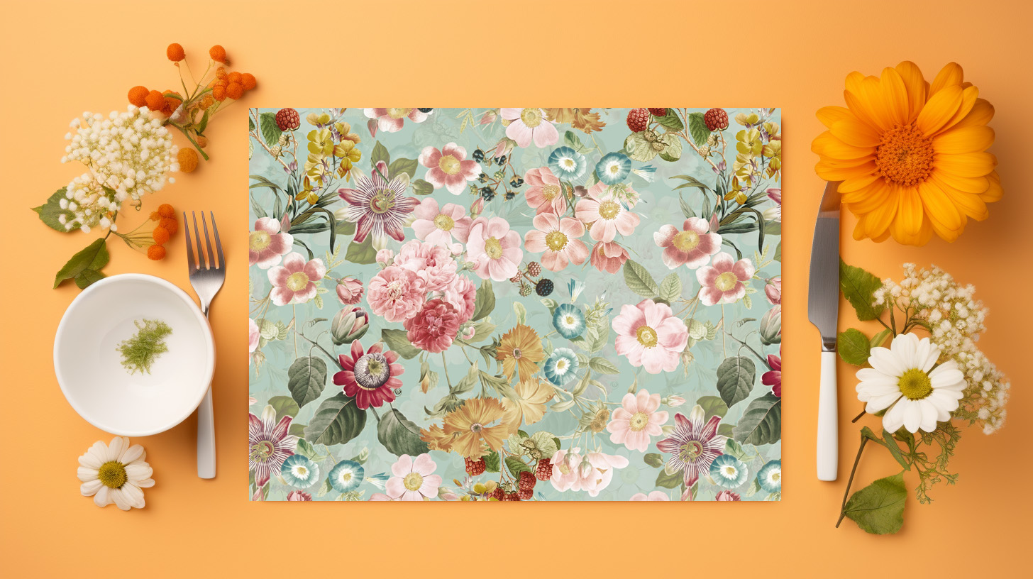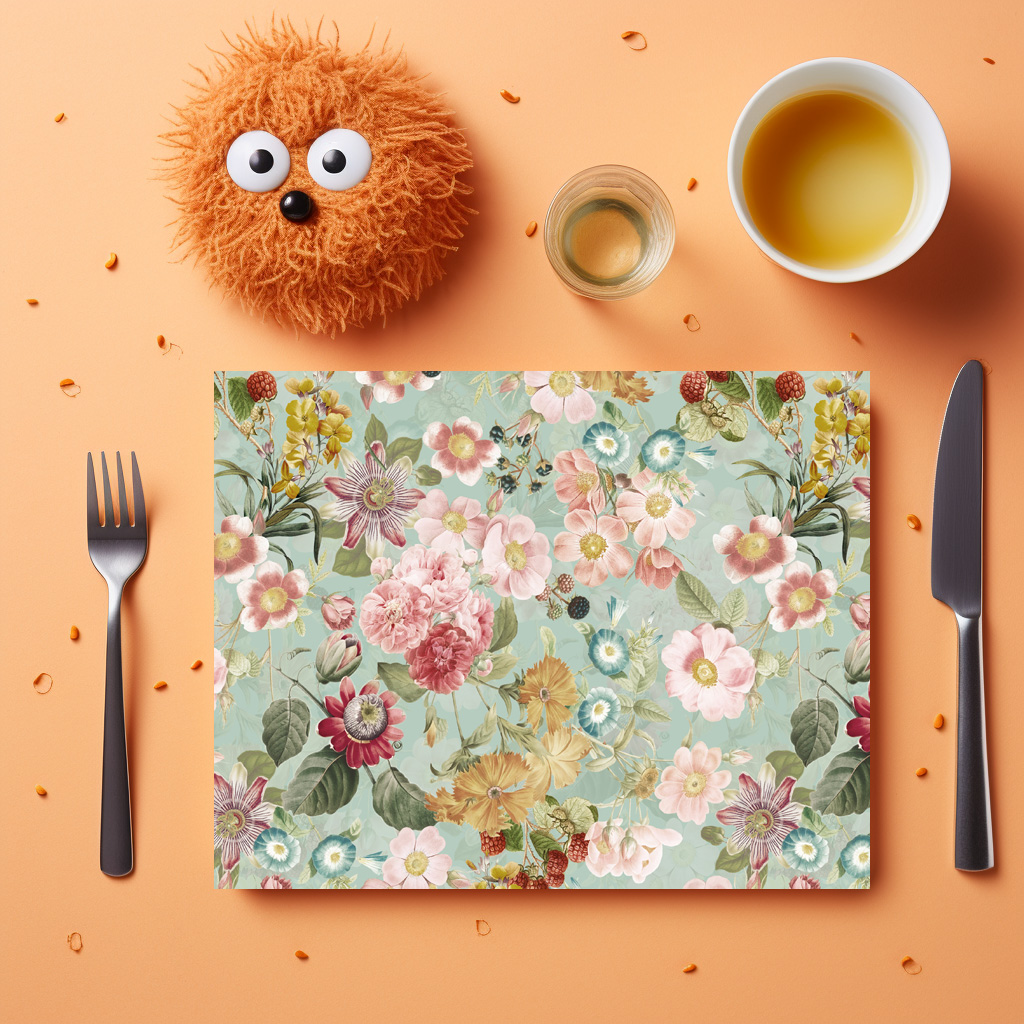 Brighten up your dining room with our colorful vinyl placemats from our artists! These one-sided printed placemats are made from durable material and are perfect for adding a pop of color to your table. Measuring 40 x 30 cm, they are just the right size for any tableware. Brighten up your meals with style and practicality!