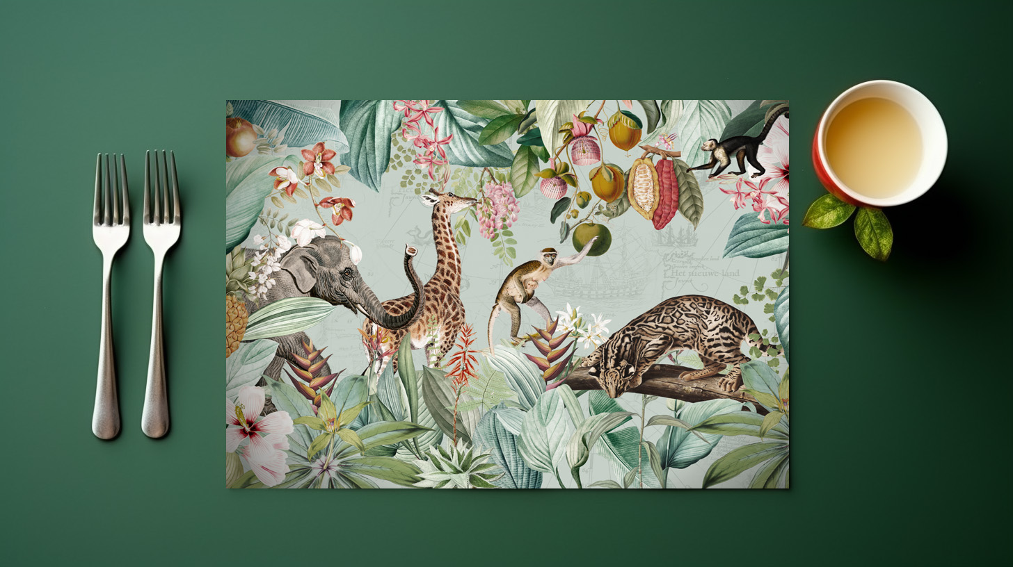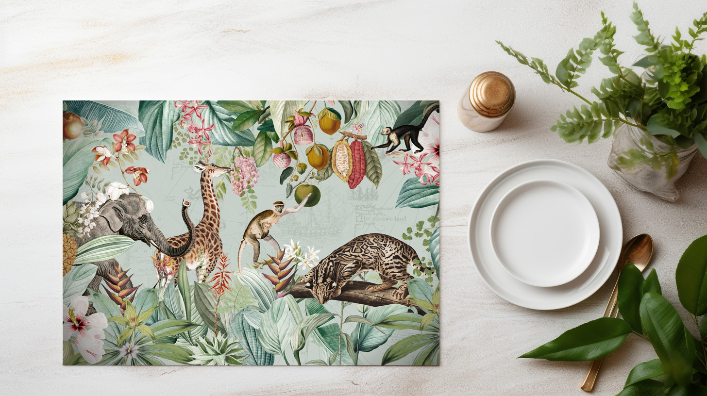 Brighten up your dining room with our colorful vinyl placemats from our artists! These one-sided printed placemats are made from durable material and are perfect for adding a pop of color to your table. Measuring 40 x 30 cm, they are just the right size for any tableware. Brighten up your meals with style and practicality!