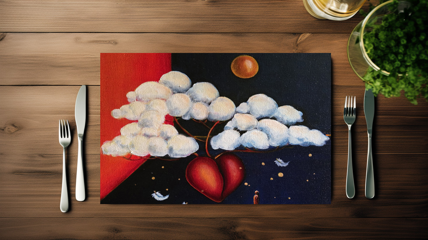 Brighten up your dining room with our colorful vinyl placemats from our artists! These one-sided printed placemats are made from durable material and are perfect for adding a pop of color to your table. Measuring 40 x 30 cm, they are just the right size for any tableware. Brighten up your meals with style and practicality!