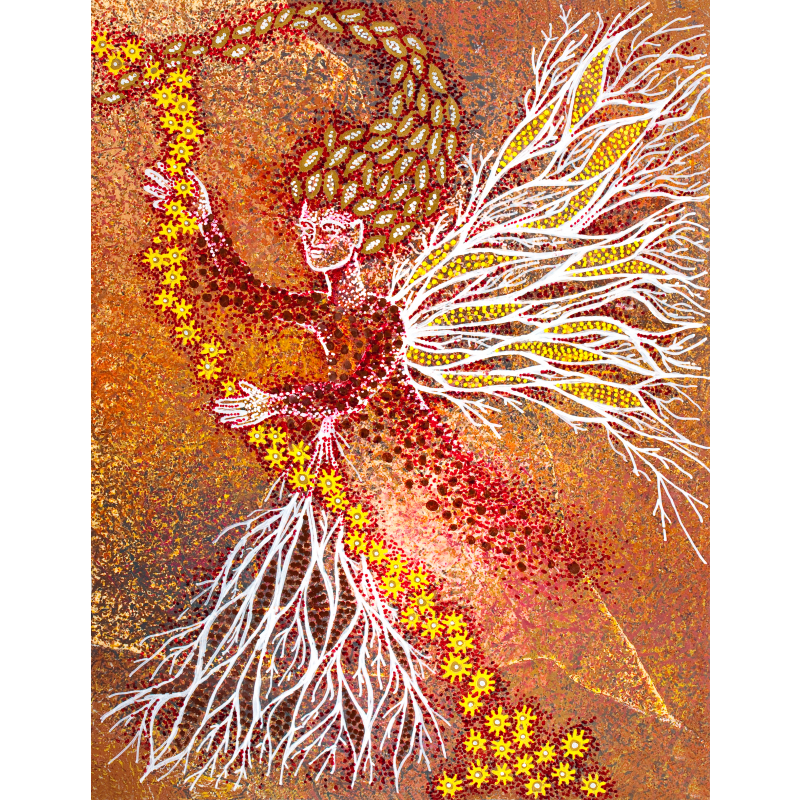 arte abstracto mujer otoño imagen flor sosteniendo chica manos cosecha raíces color amarillo gente semilla prado joven gráfico ilustración símbolo