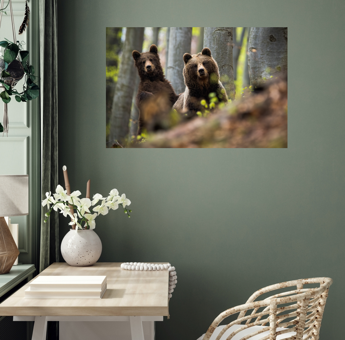 oso borroso compañerismo vista frontal animal familia afecto grupo brillante europa bebé primer plano texto desierto pareja joven exterior relación colorido naturaleza salvaje descendencia vida salvaje hojas proximidad para observar marrón ursus arctos mirando bosque madre amor horizontal madera verano unión dos retrato conexión primer plano niño de pie primavera unísono imagen distancia cachorros árboles hábitat