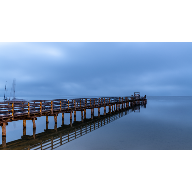 El muelle de vapor en Schondorf (Ammersee) en la hora azul