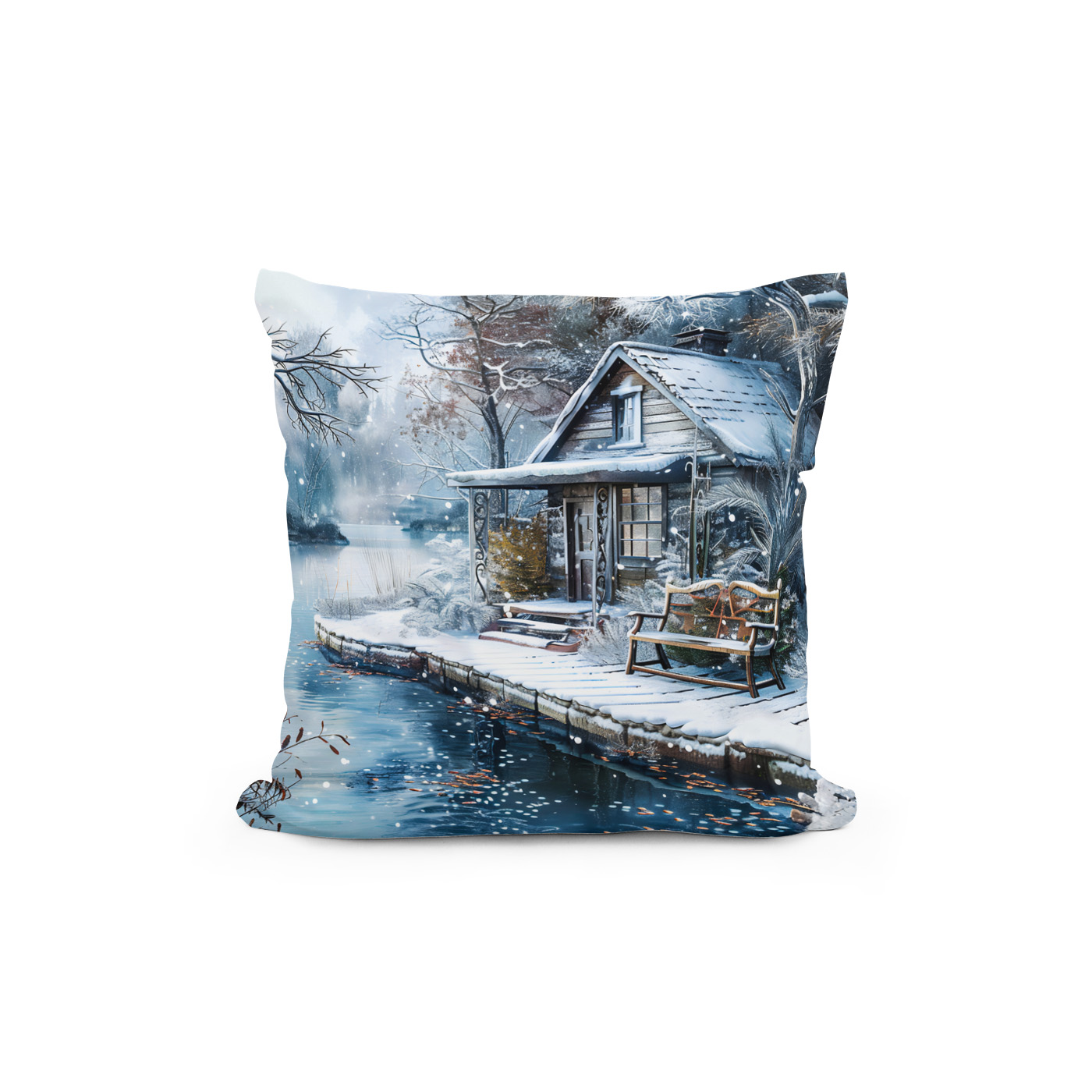 raxxa Premium Kissen Old Mill by Frosty River in Winter Illustration