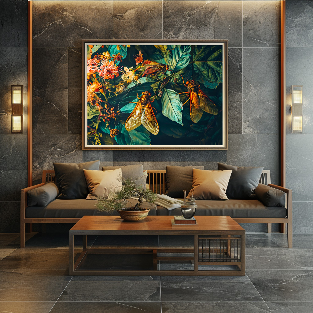 "Cicadas on Ghost Plant Garden Illustration" by Anja Frost