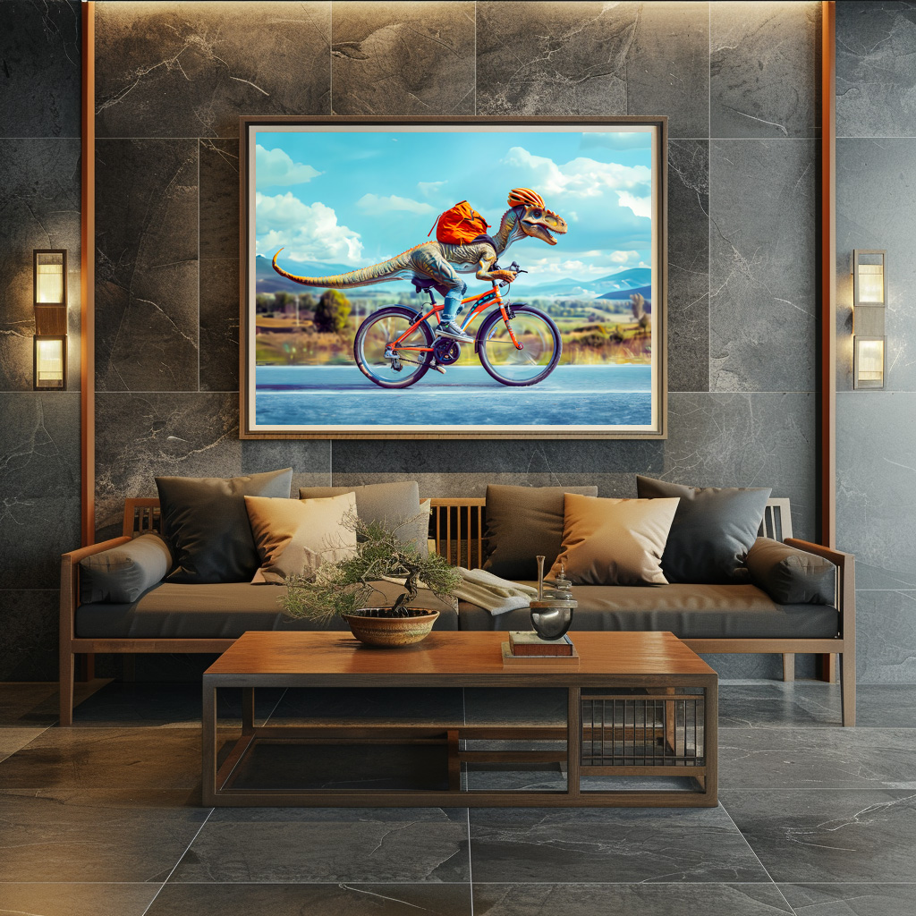 "Dinosaur Cycling Through Countryside" by Anja Frost