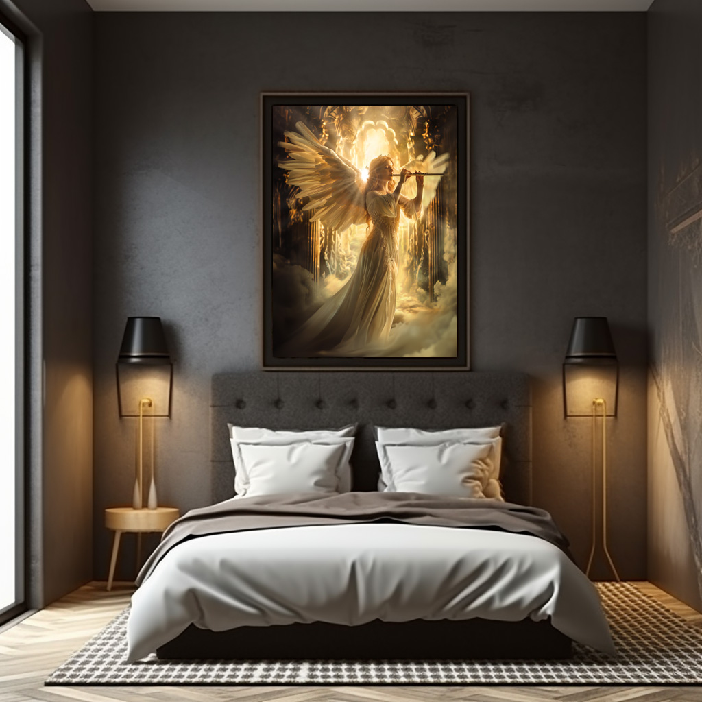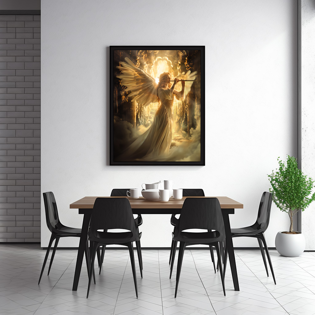 illustration featuring an angel playing a flute, evoking a sense of ethereal melody and serenity. Immerse yourself in the divine harmony created by this celestial musician