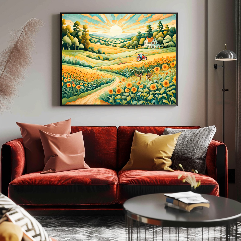 Sé el primero en valorar “Poster: Pastel Landscape with Sunflower Fields and Path”