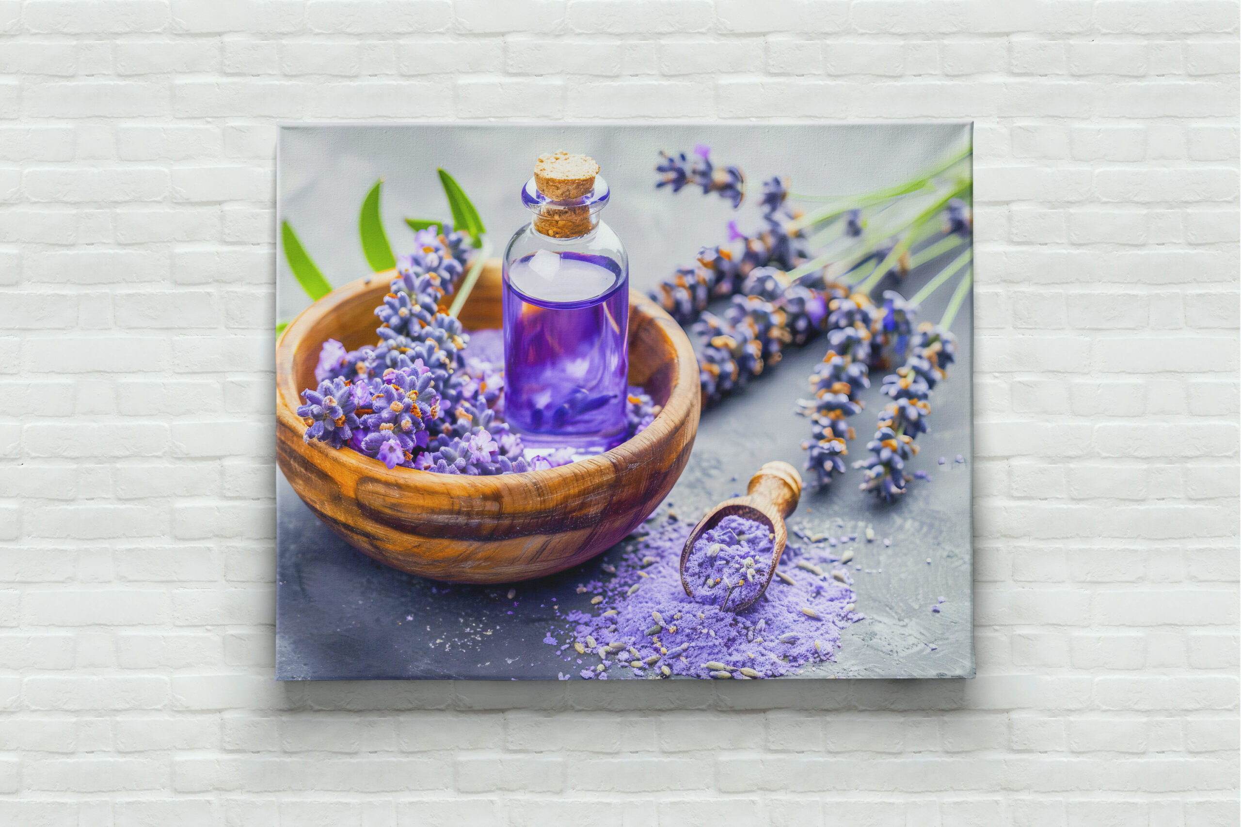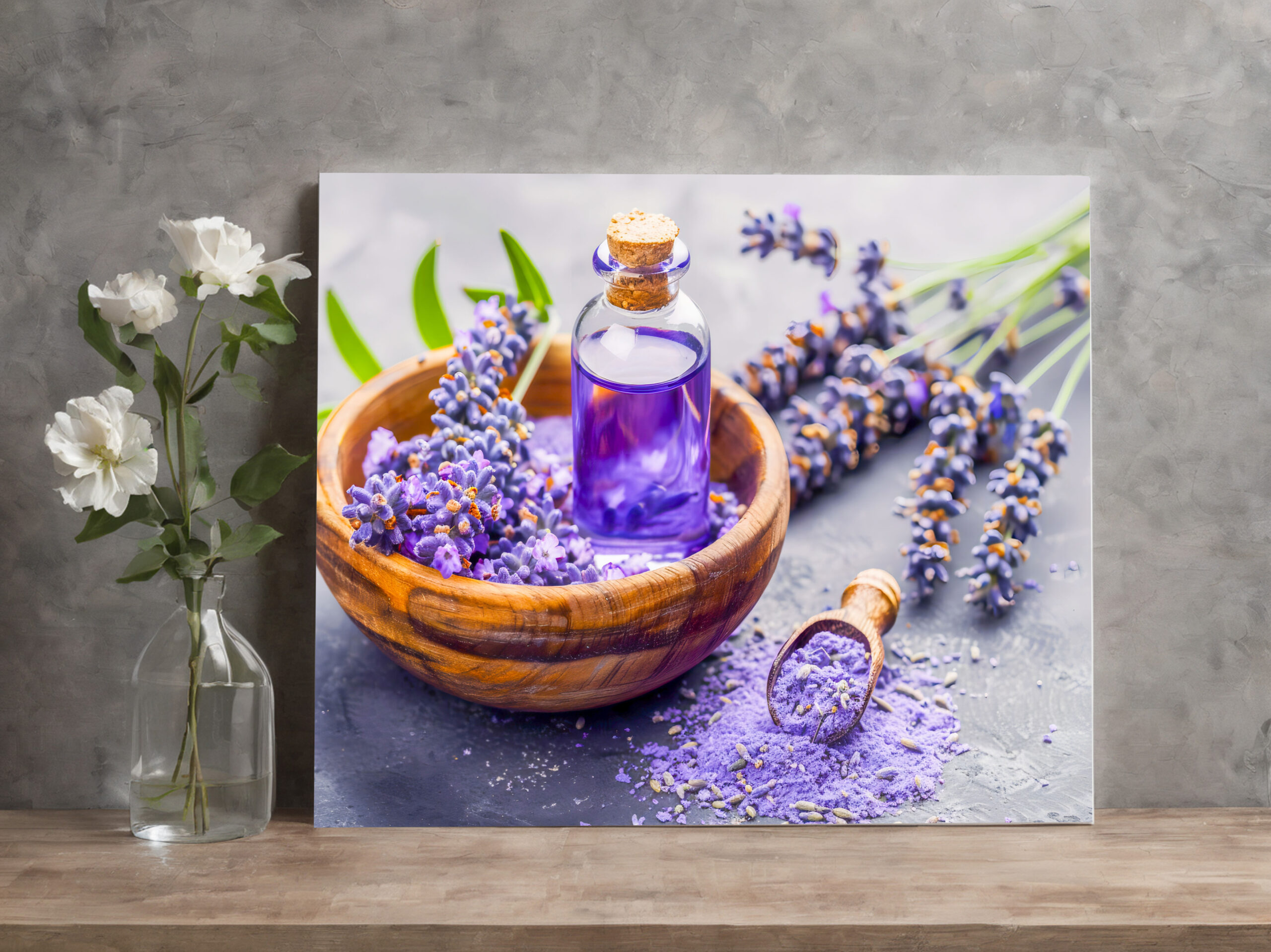 "Lavendelöl und Duft in Holzschale" by Anja Frost