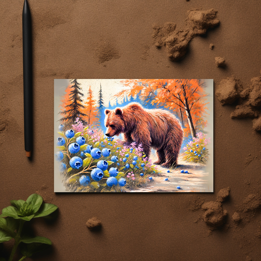 Sé el primero en valorar “raxxa Postkarte: Brown Bear with Blueberries Pastel Chalk Art”