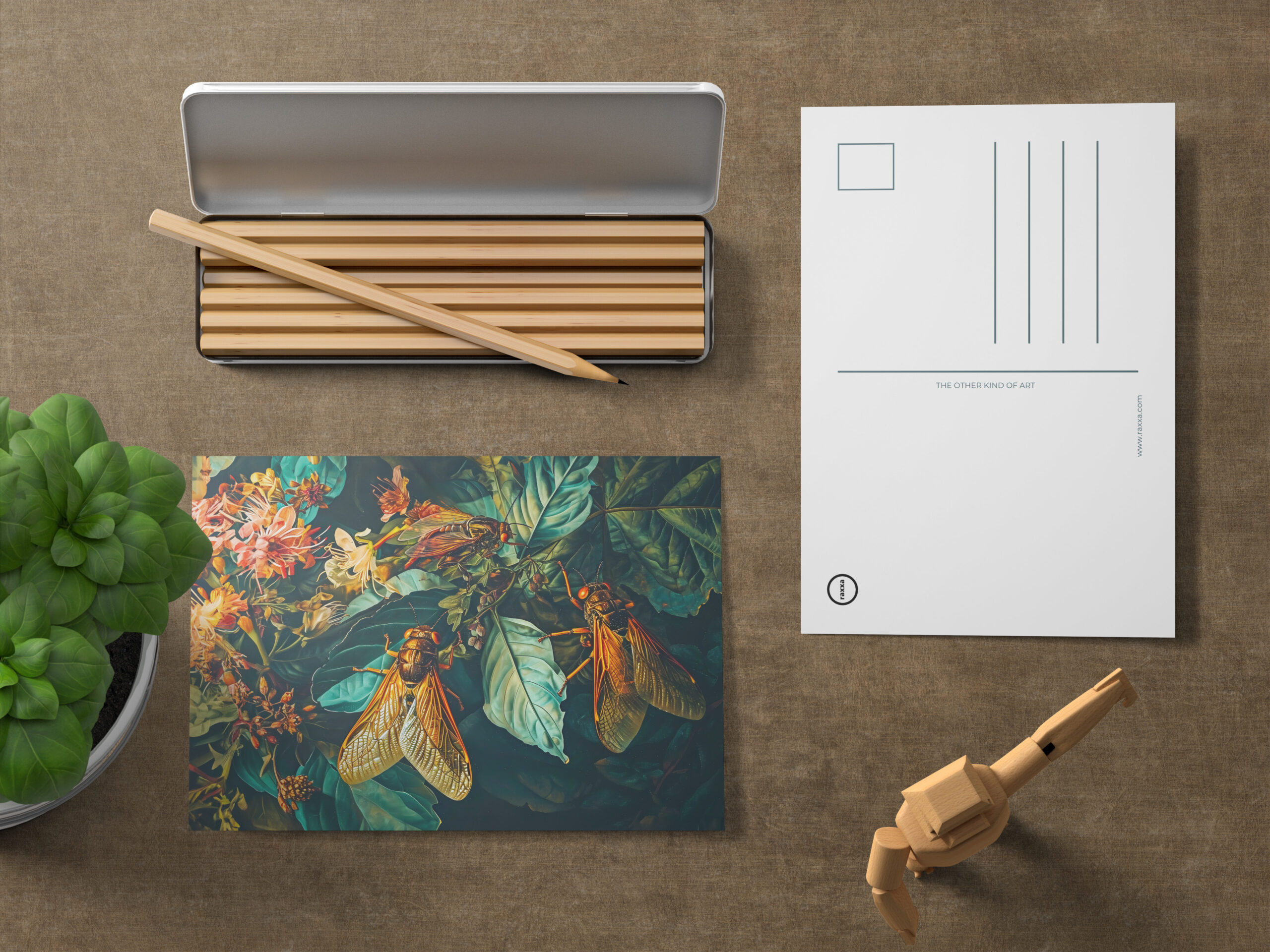 "Cicadas on Ghost Plant Garden Illustration" by Anja Frost