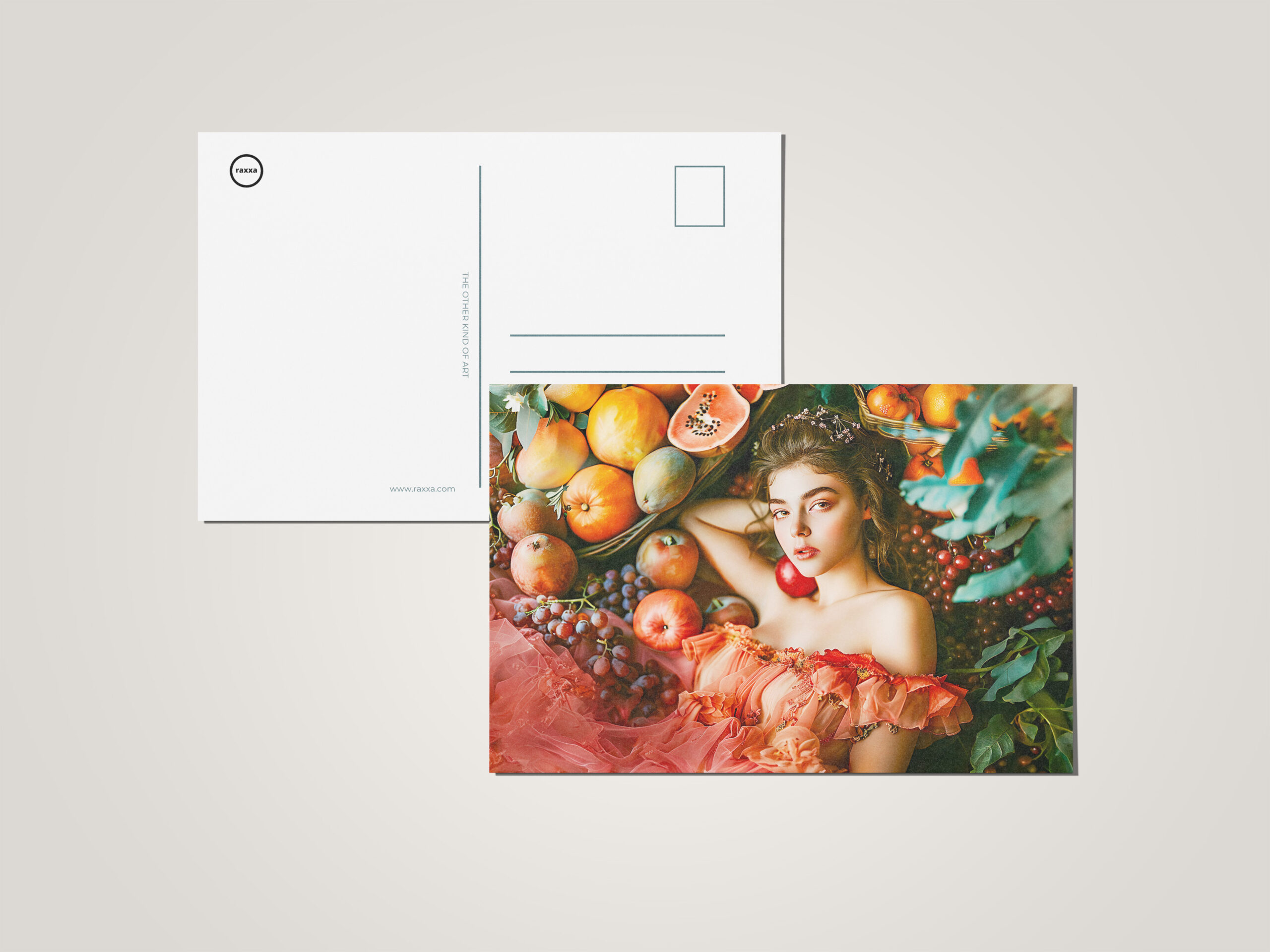 "Woman with fruits and flowers portrait style" by Anja Frost