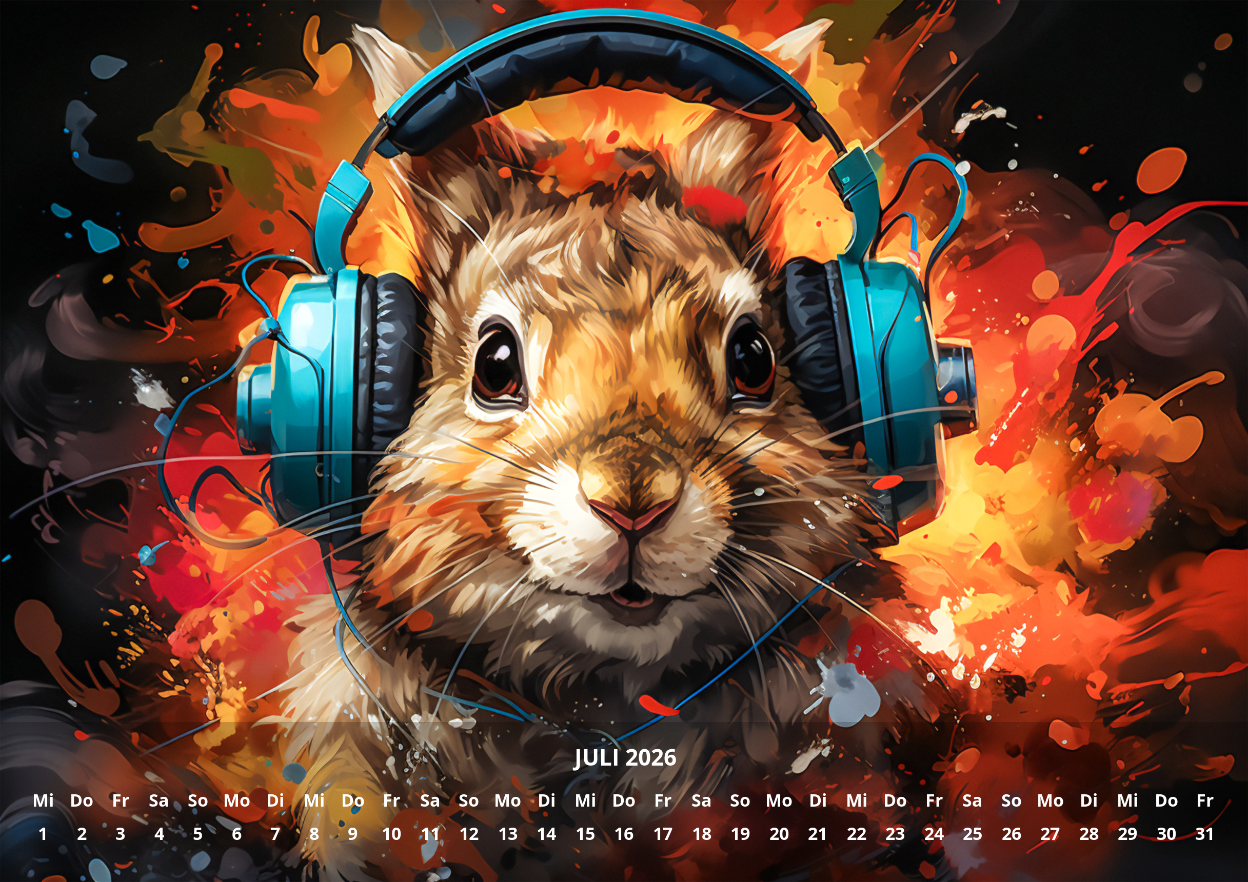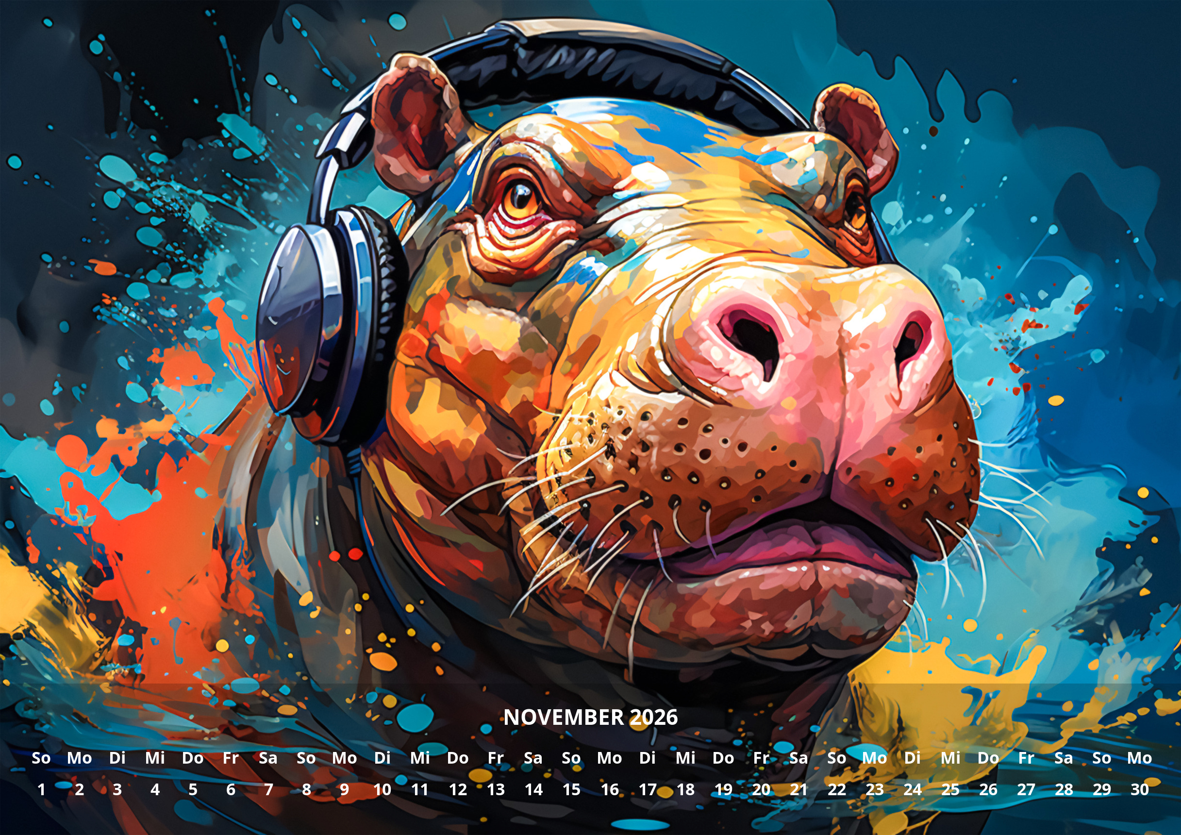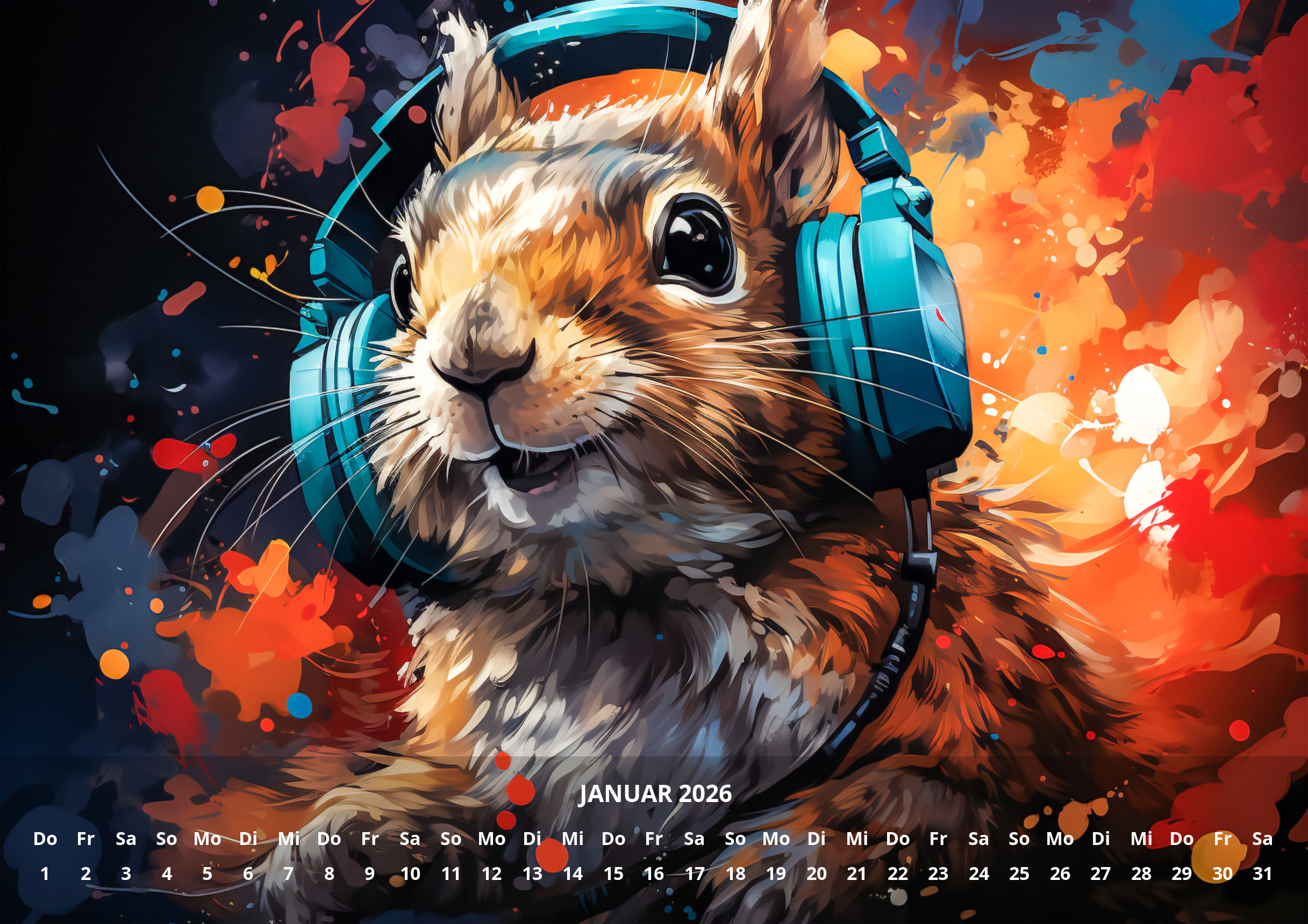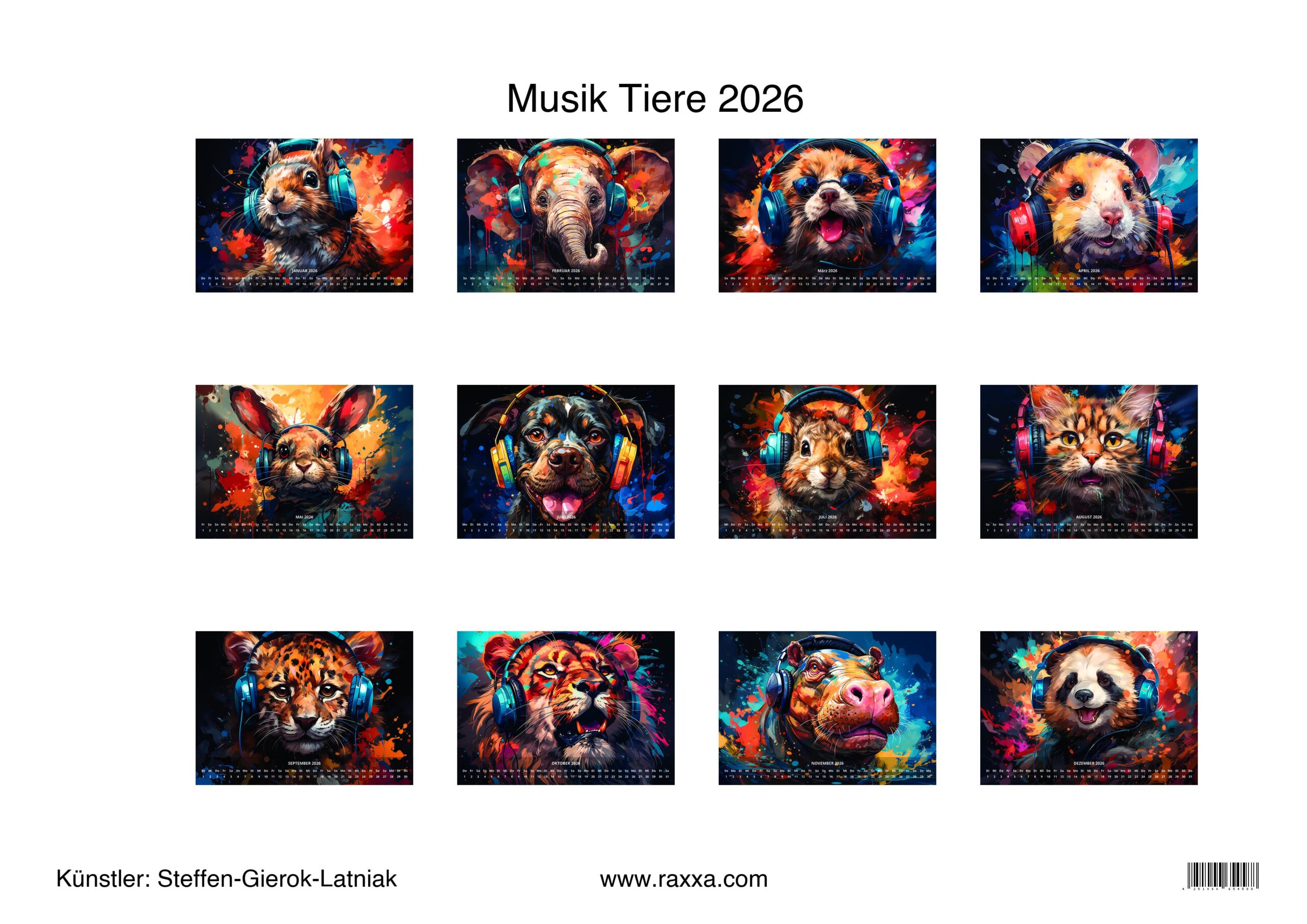 raxxa Premium-Monatskalender Musik Tiere 2026 by Steffen Gierok-Latniak