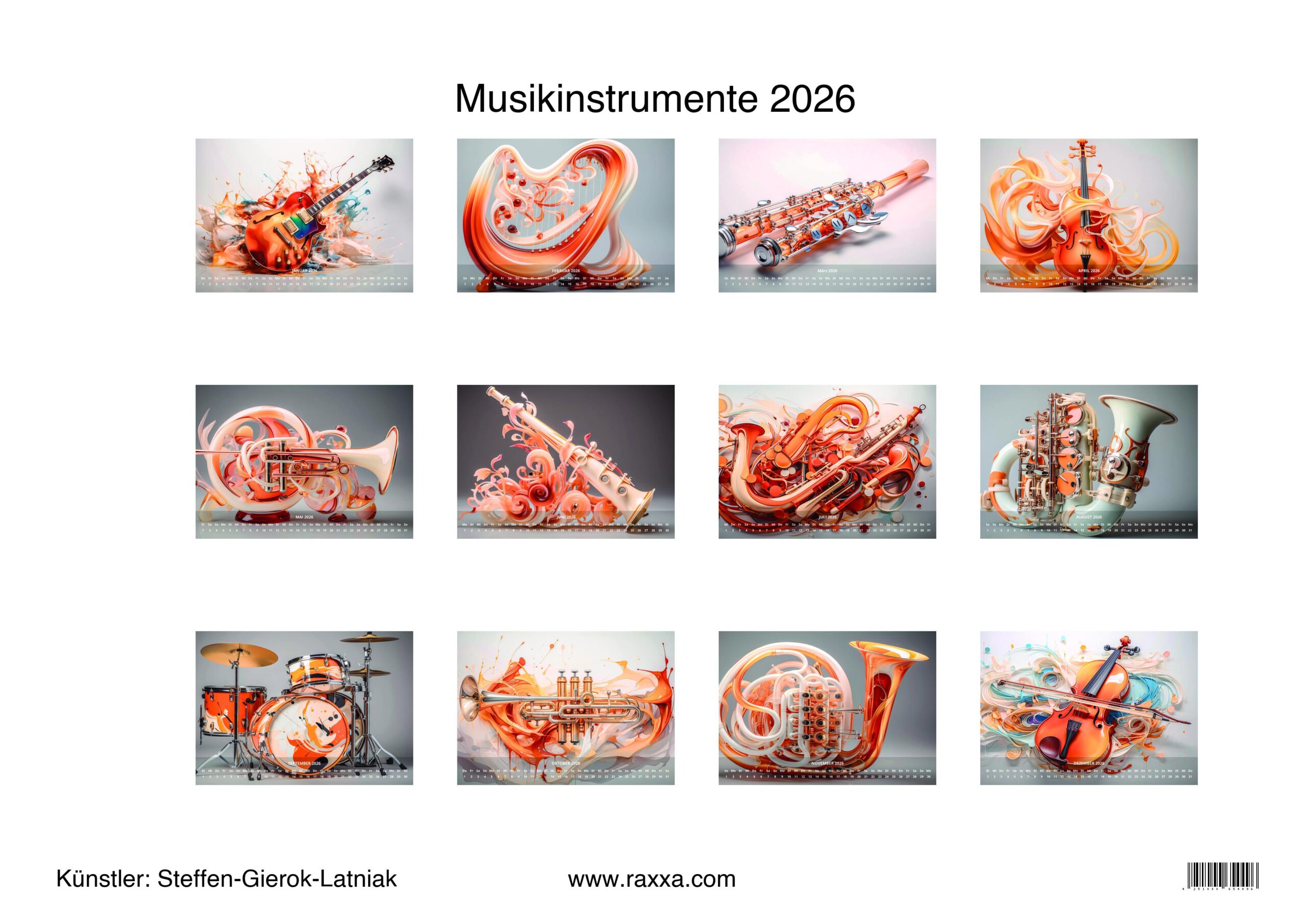 raxxa Premium-Monatskalender Musikinstrumente 2026 by Steffen Gierok-Latniak