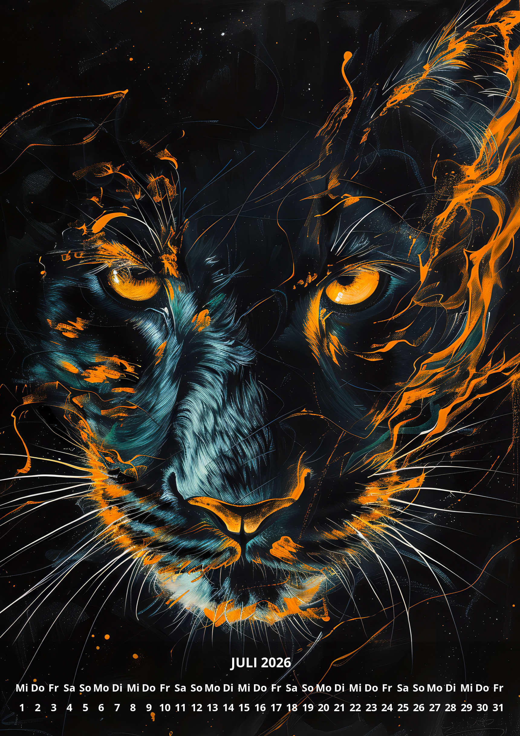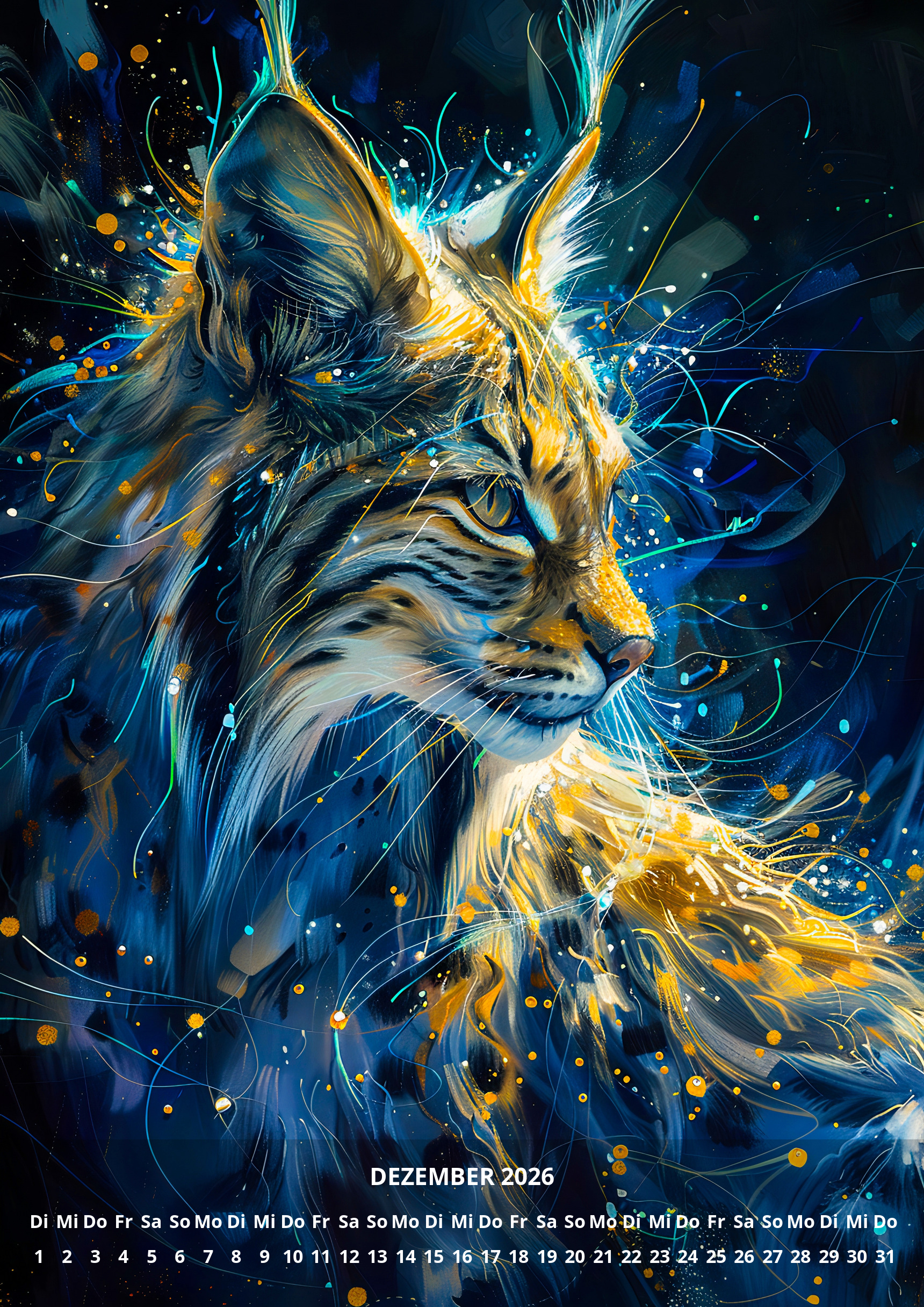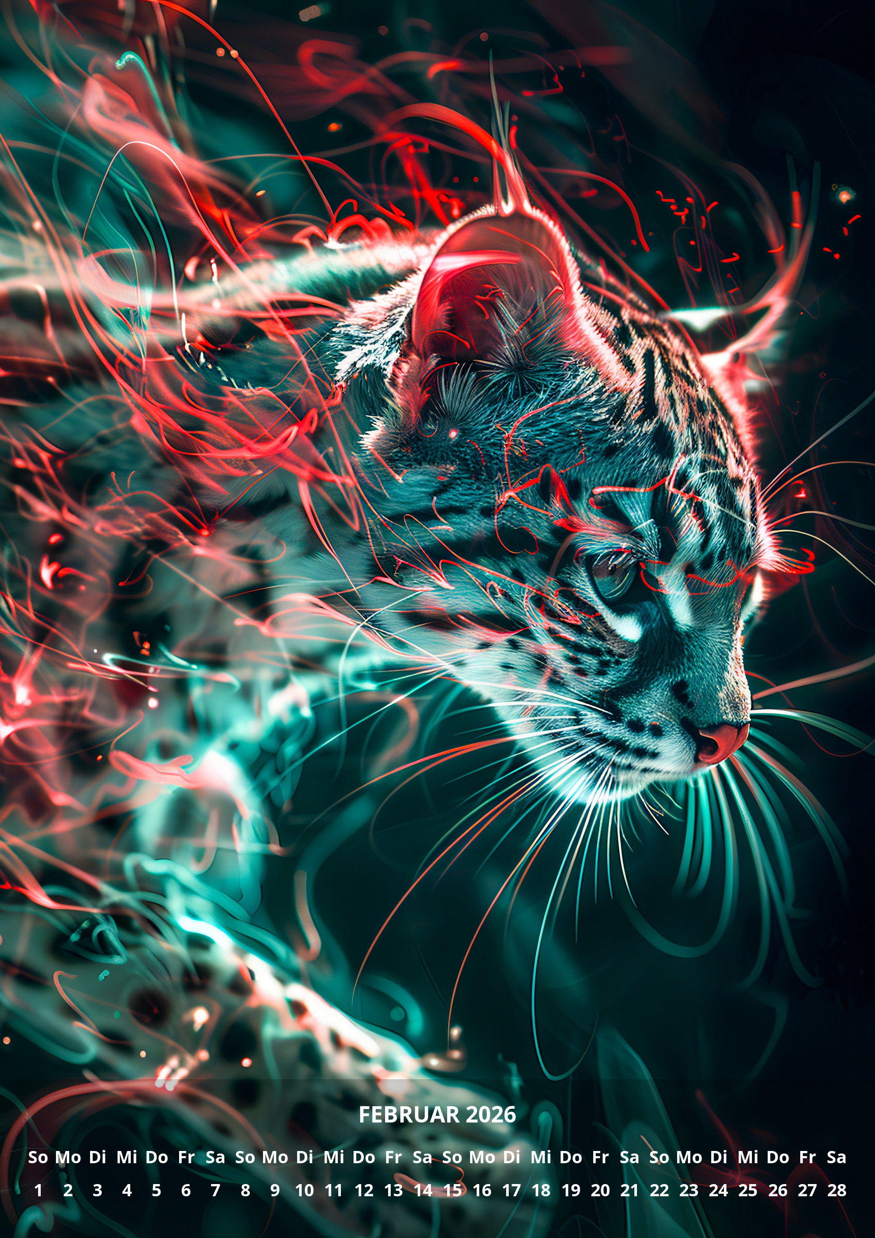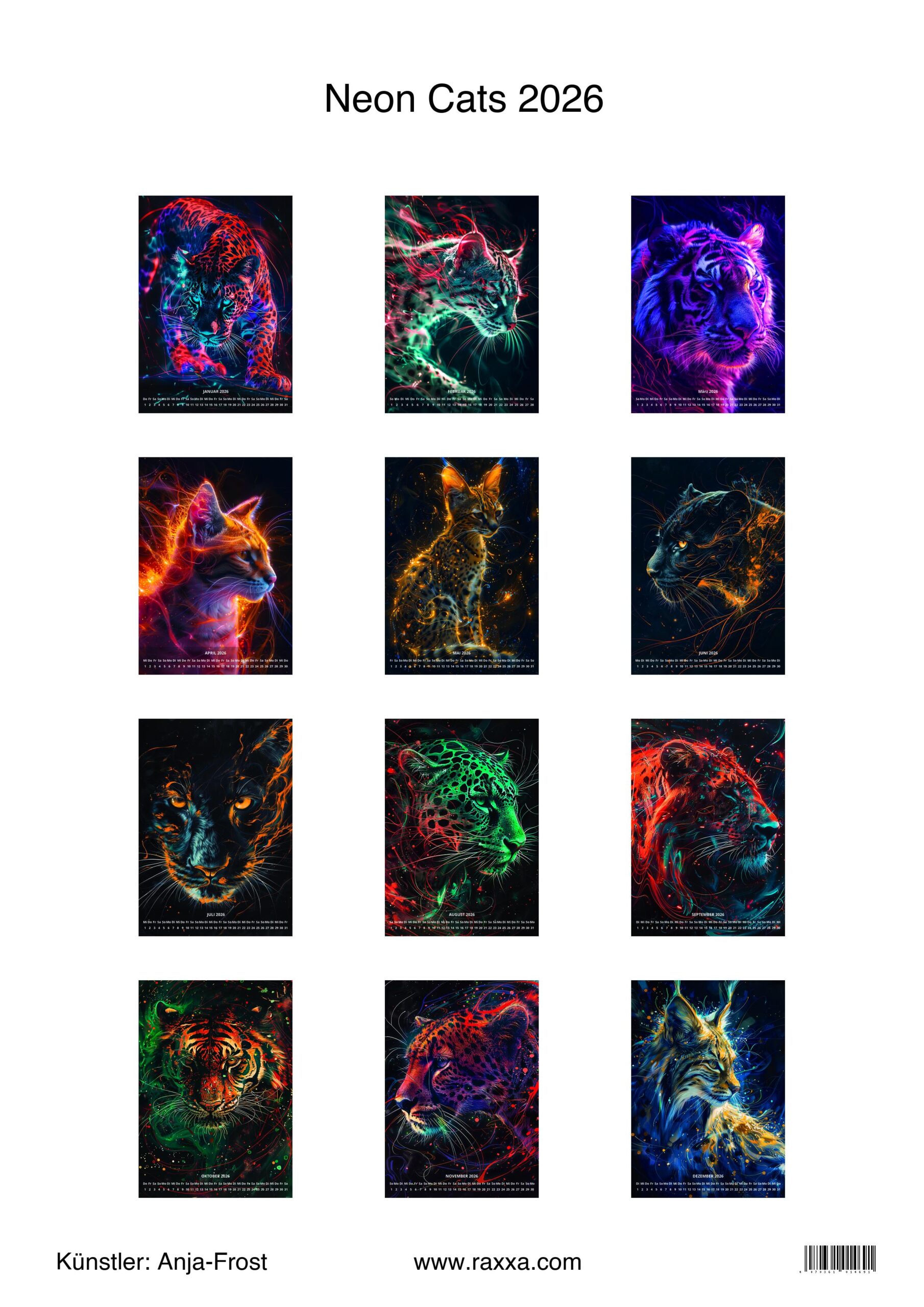 raxxa Premium-Monatskalender Neon Cats 2026 by Anja Frost