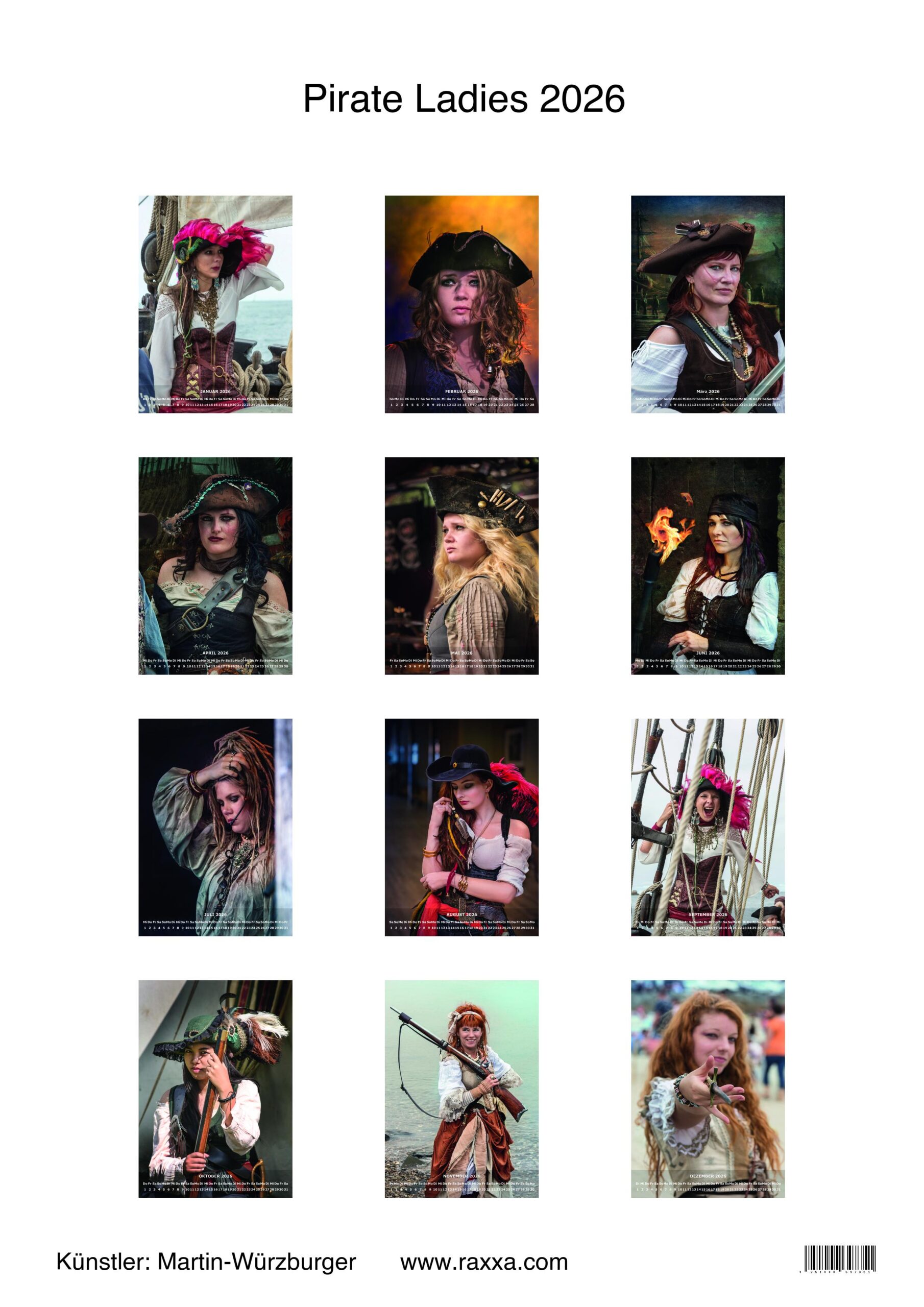 raxxa Premium-Monatskalender Pirate Ladies 2026 by Martin Würzburger