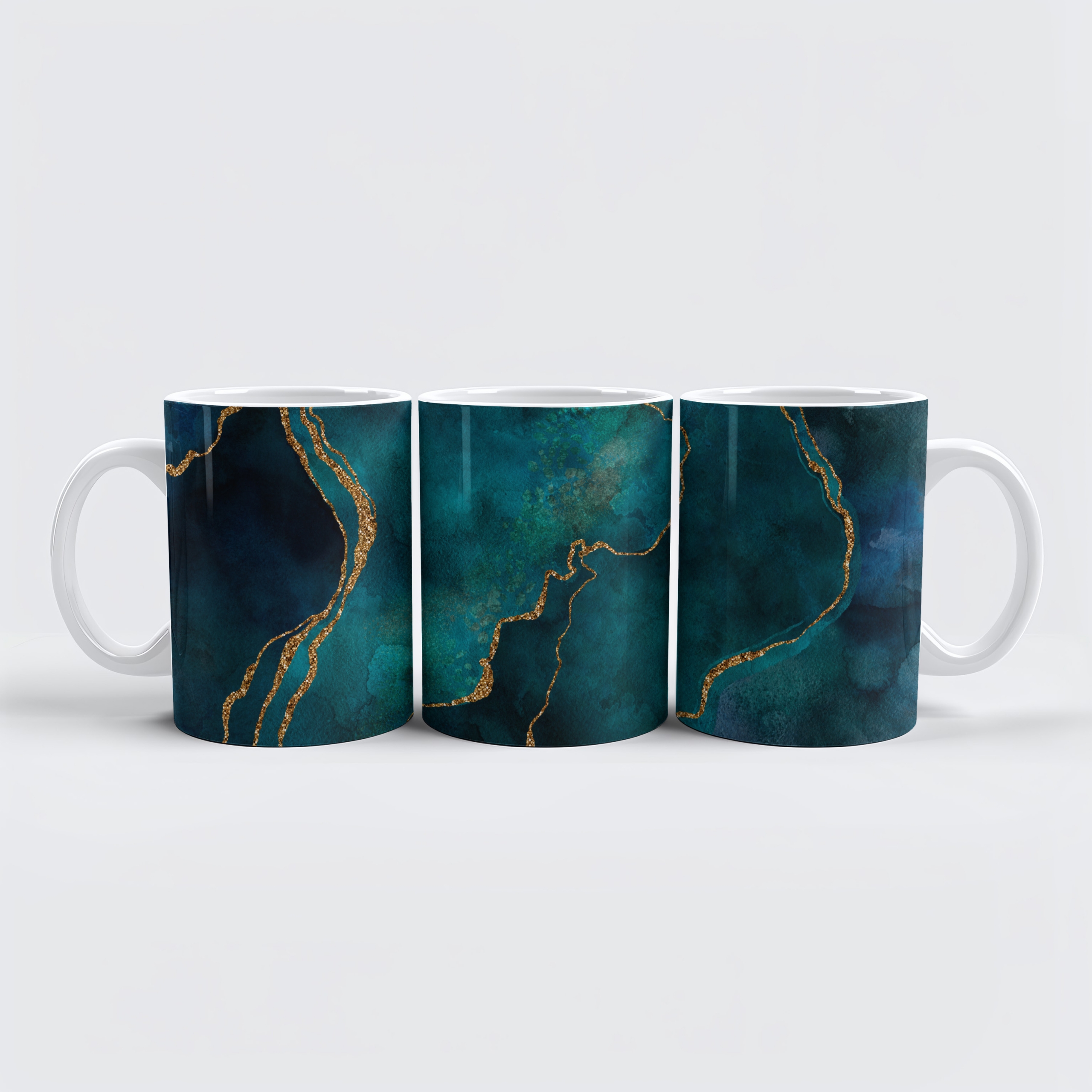 Diseño en acuarela de piedras preciosas y minerales en ricos colores azul oscuro y turquesa, con brillantes vetas doradas.