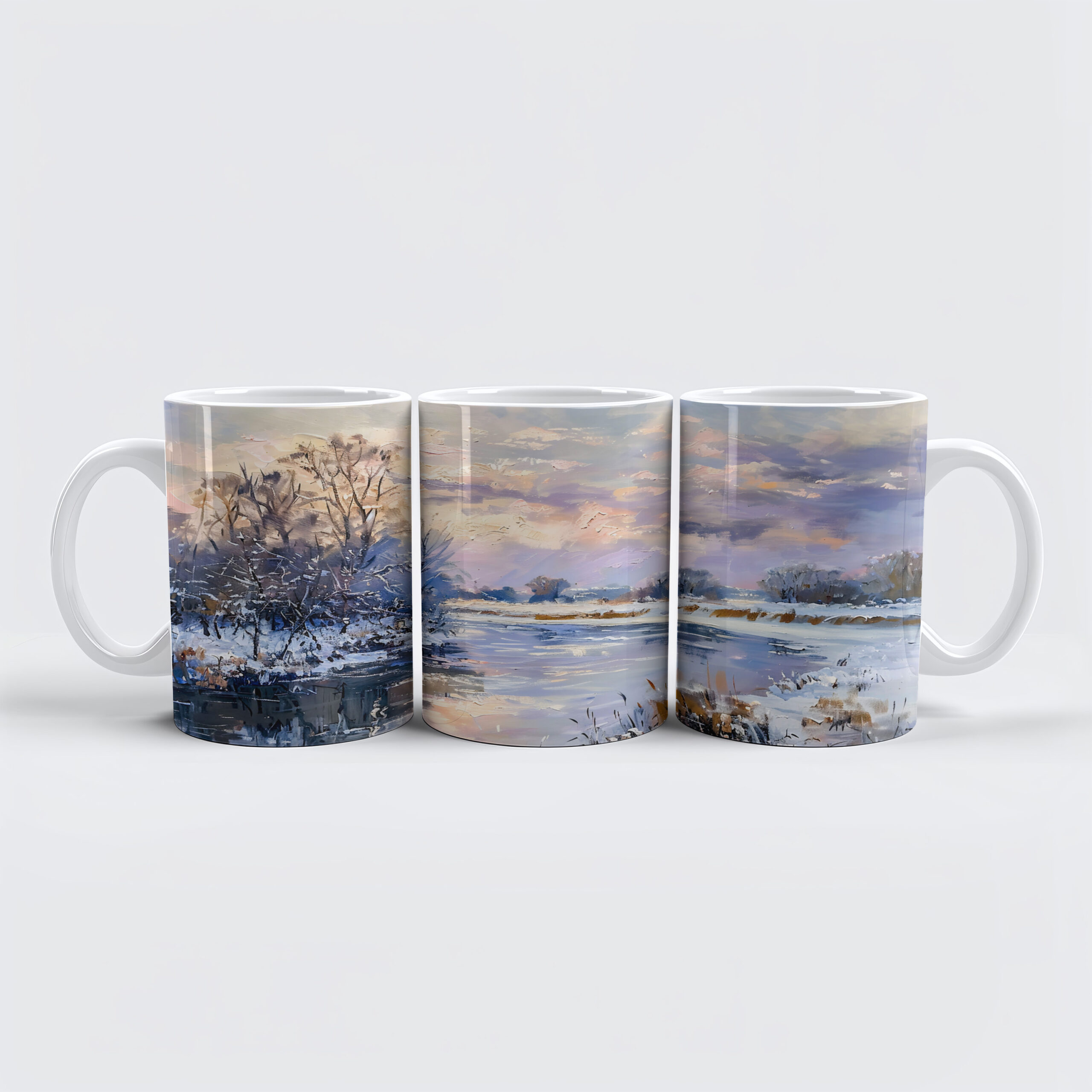 A breathtaking winter landscape of the Havel River, blanketed in snow with wild clouds and weeping willows along the icy shore. The impressionistic style captures the serene beauty and tranquility of the scene, creating a peaceful and inviting atmosphere.