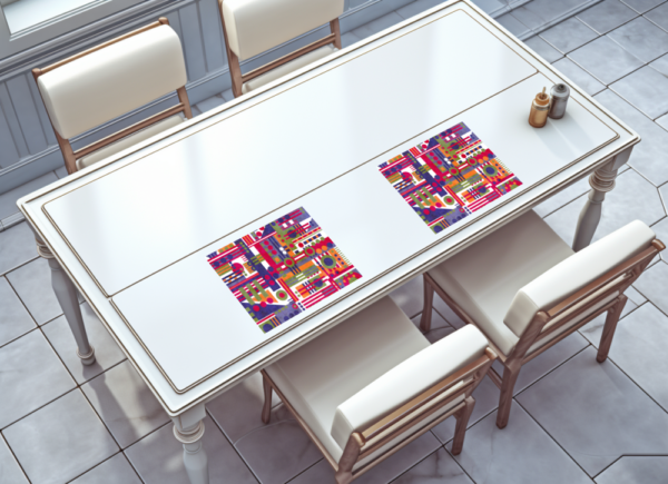 Alegra tu comedor con los coloridos manteles individuales de vinilo de nuestros artistas. Estos manteles individuales impresos por una cara están fabricados con un material resistente y son perfectos para dar un toque de color a tu mesa. Con unas medidas de 40 x 30 cm, tienen el tamaño justo para cualquier vajilla. Embellece tus comidas con estilo y practicidad.