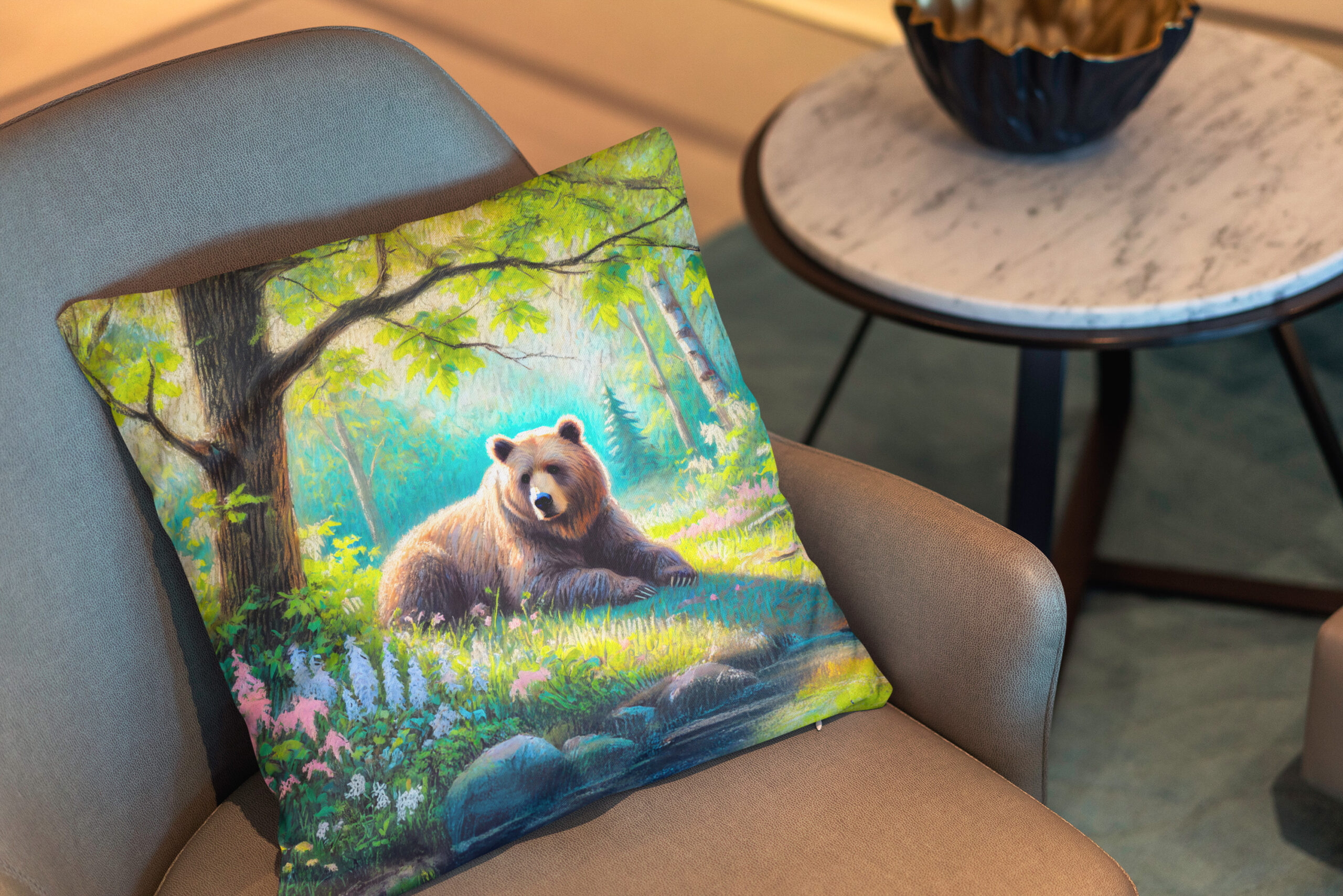 raxxa Premium Kissen Bear in Forest Glade Pastel Chalk Drawing